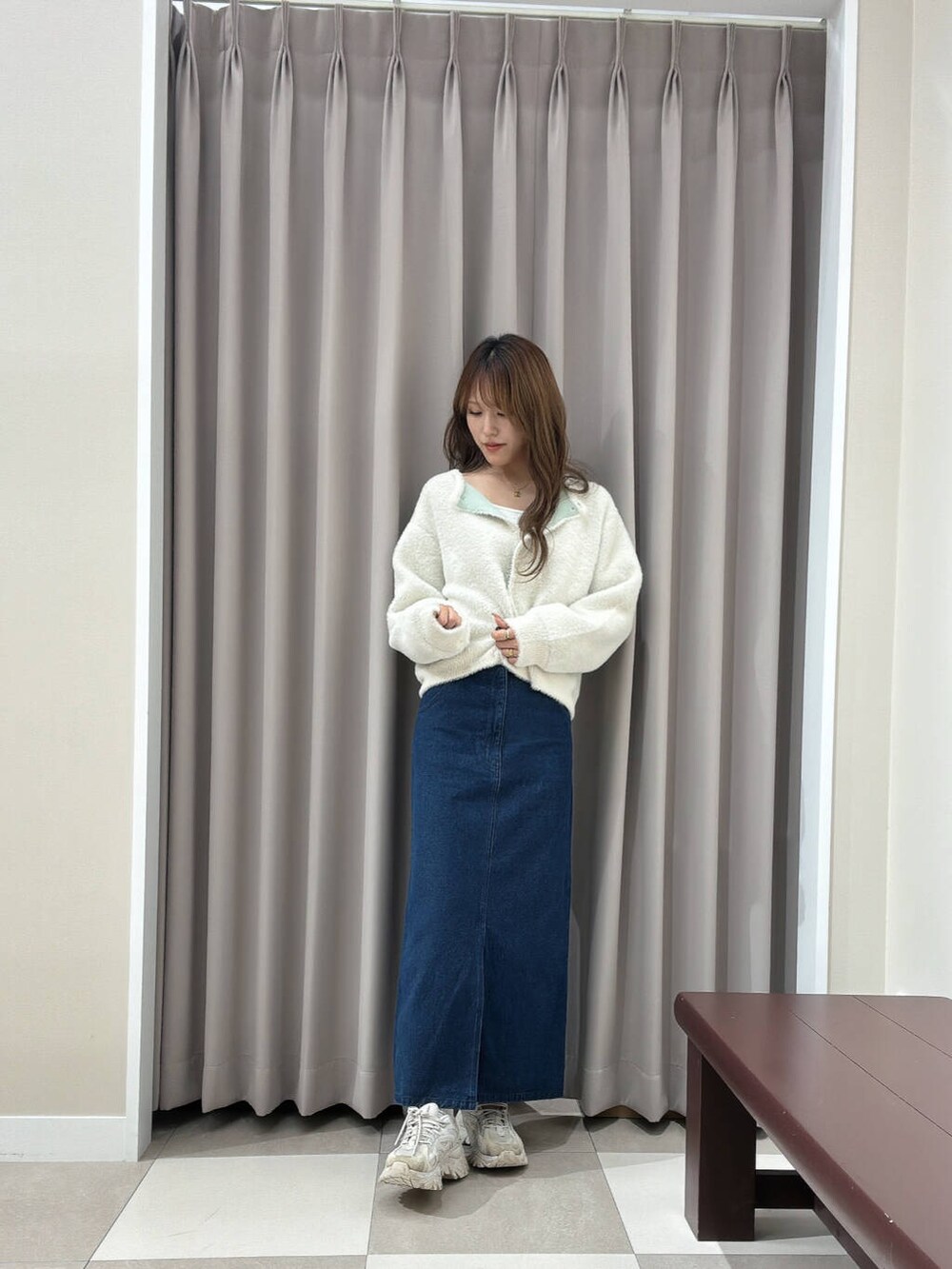 下をスキニーパンツで合わせてもまた違った雰囲気で
