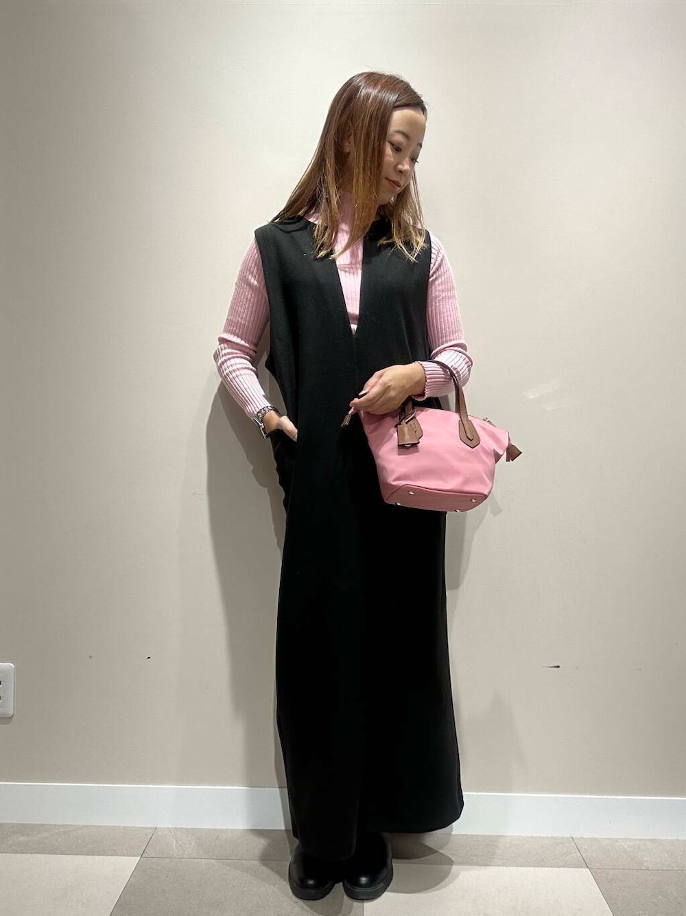 差し色のピンクが可愛い、綺麗めコーデです♪