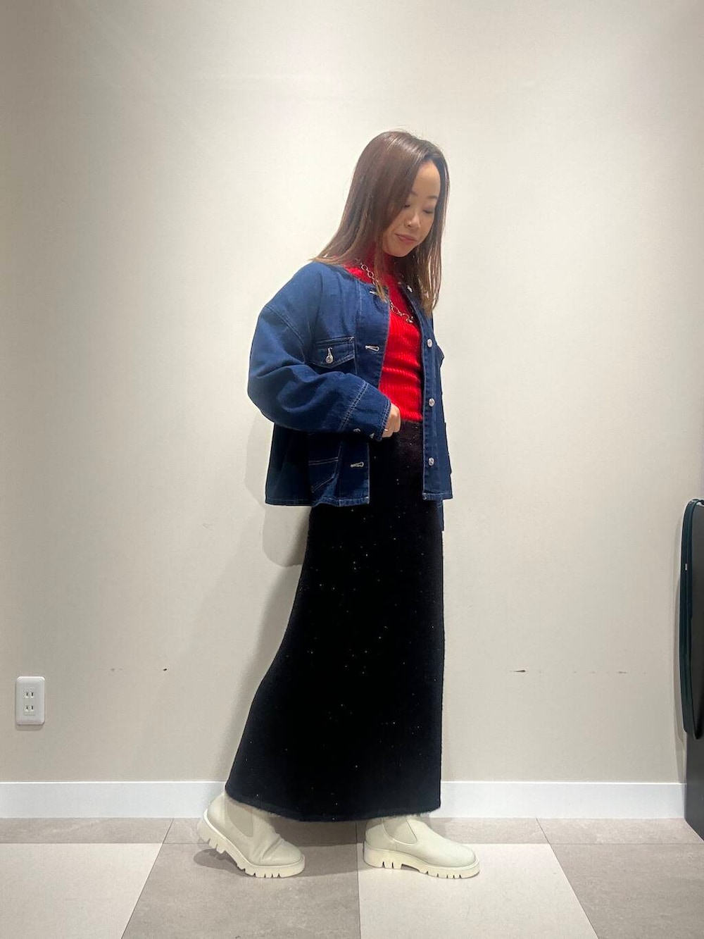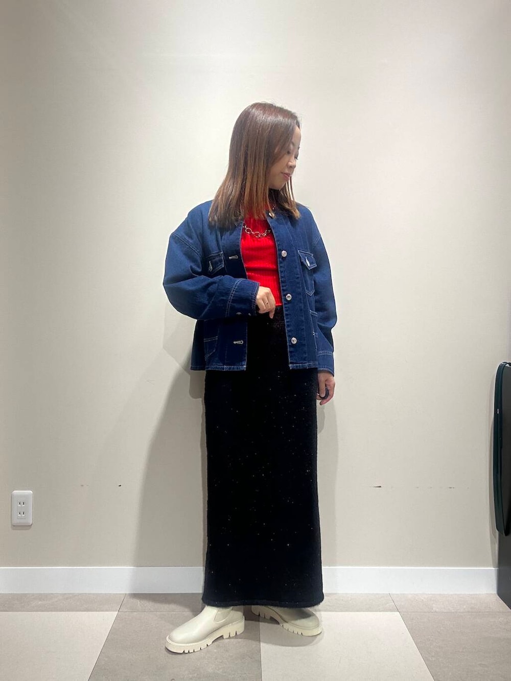デニムと赤の合わせが可愛いカジュアルコーデです!