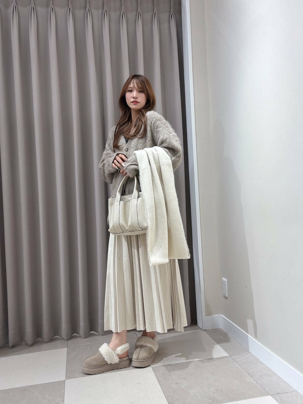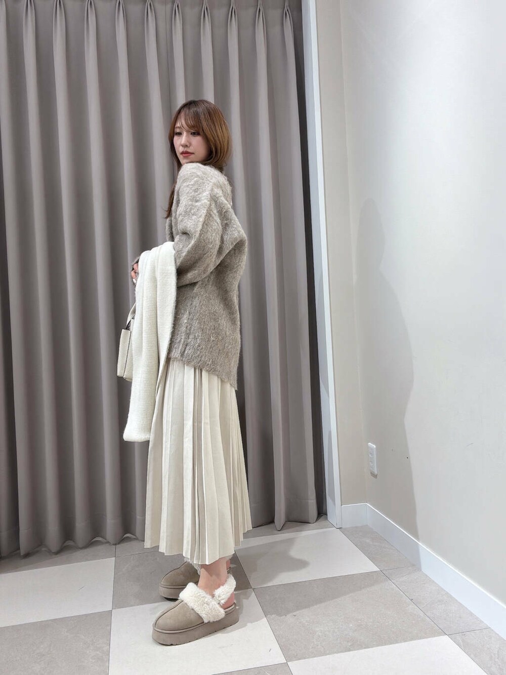 プリーツスカートで、ストンと落ちるシルエットに🤭🤍