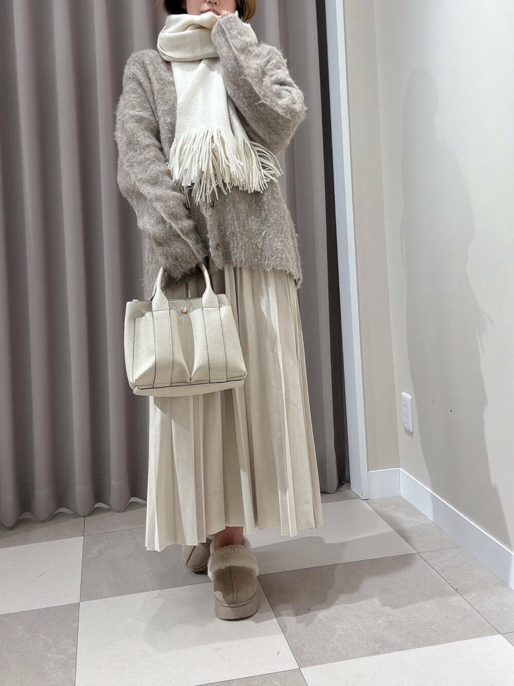 マフラーを垂らすと縦ライン意識でスタイルアップです🙂↕️