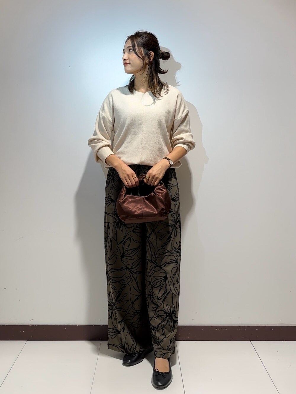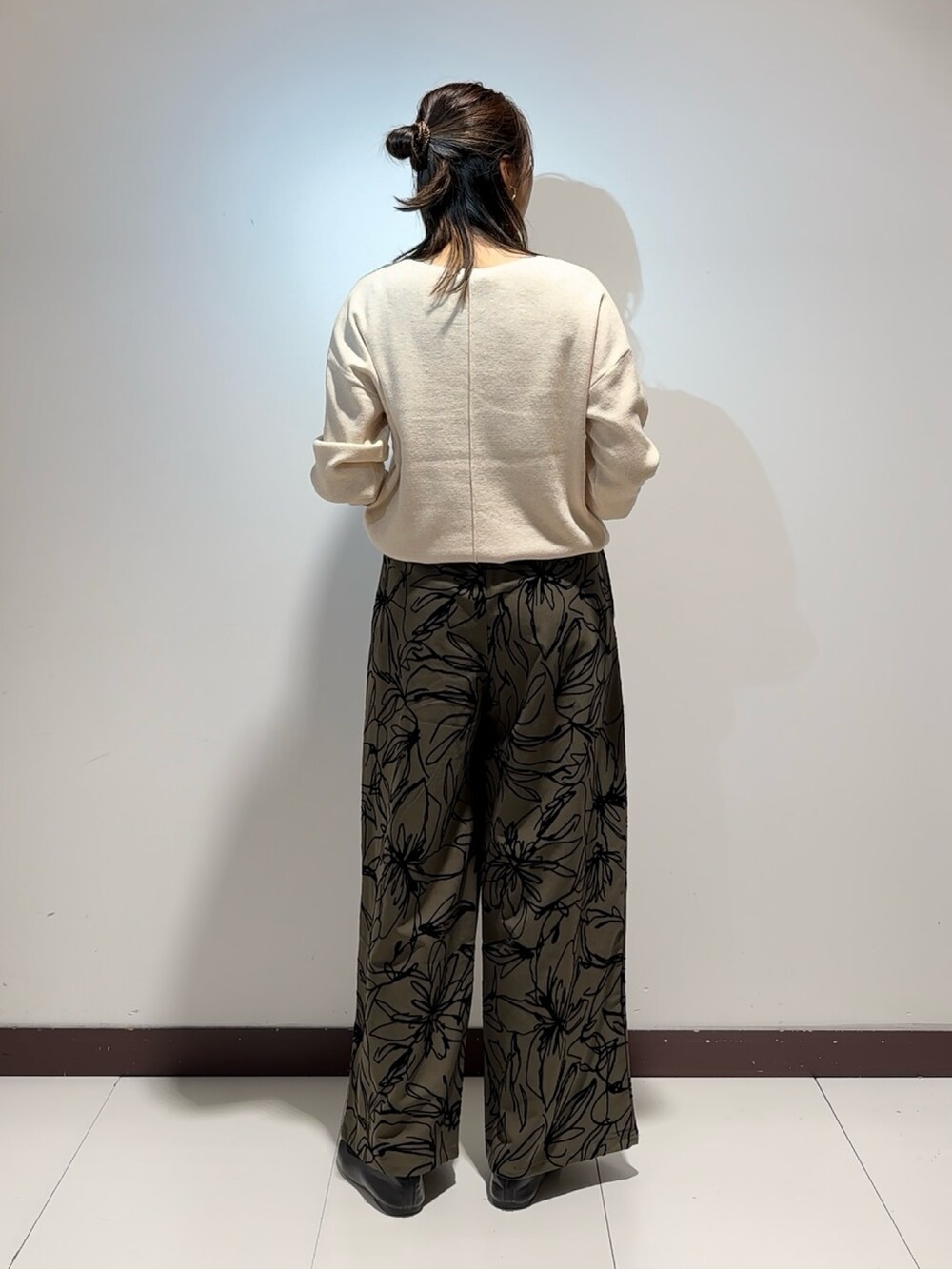 ワイドパンツは柄があり、シンプルなスタイルでもアクセントになります🫰