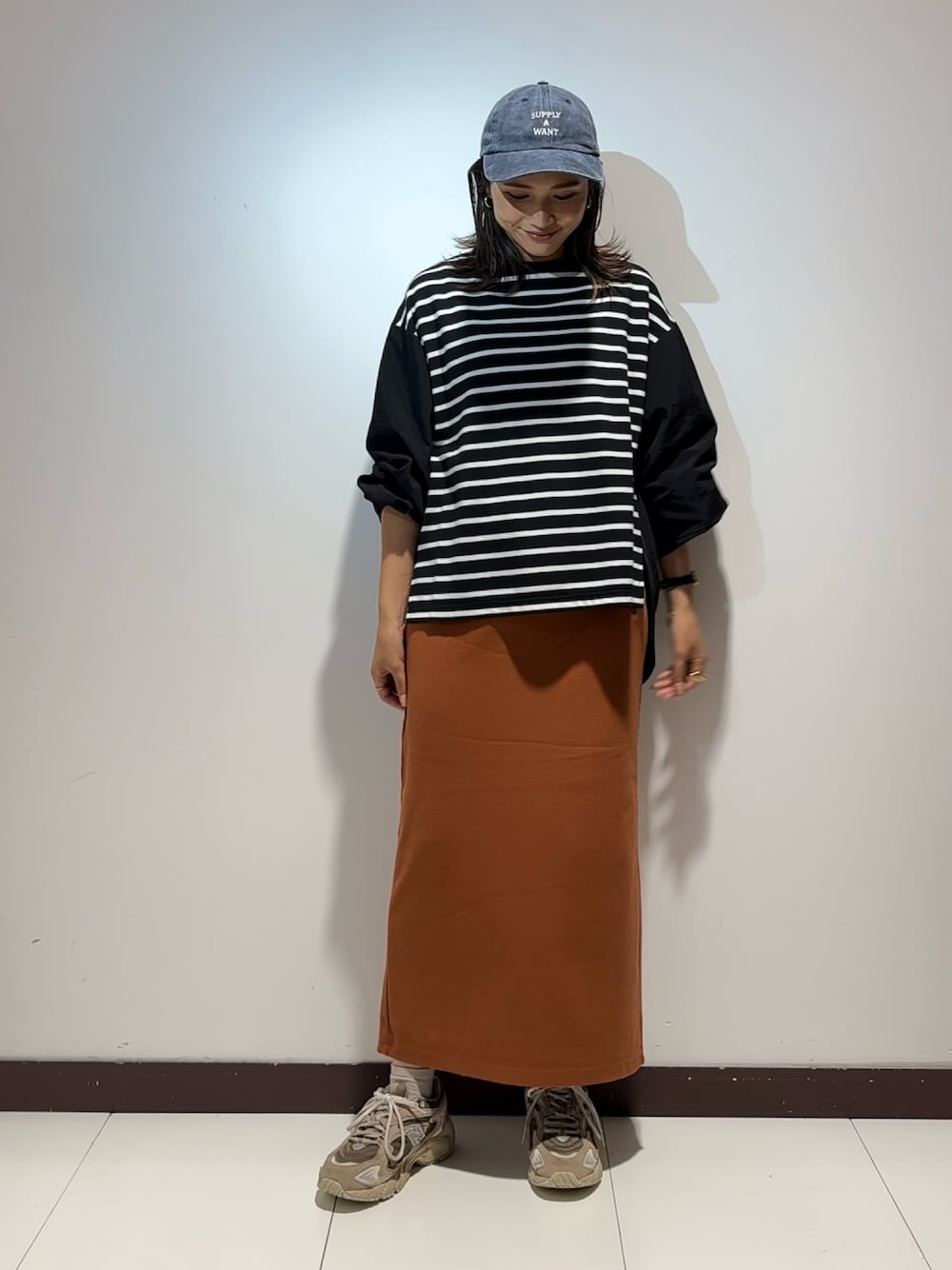 スカートは、細めのリブで合わせやすくストレッチも効いていて動きやすいのでママにもオススメです🩷