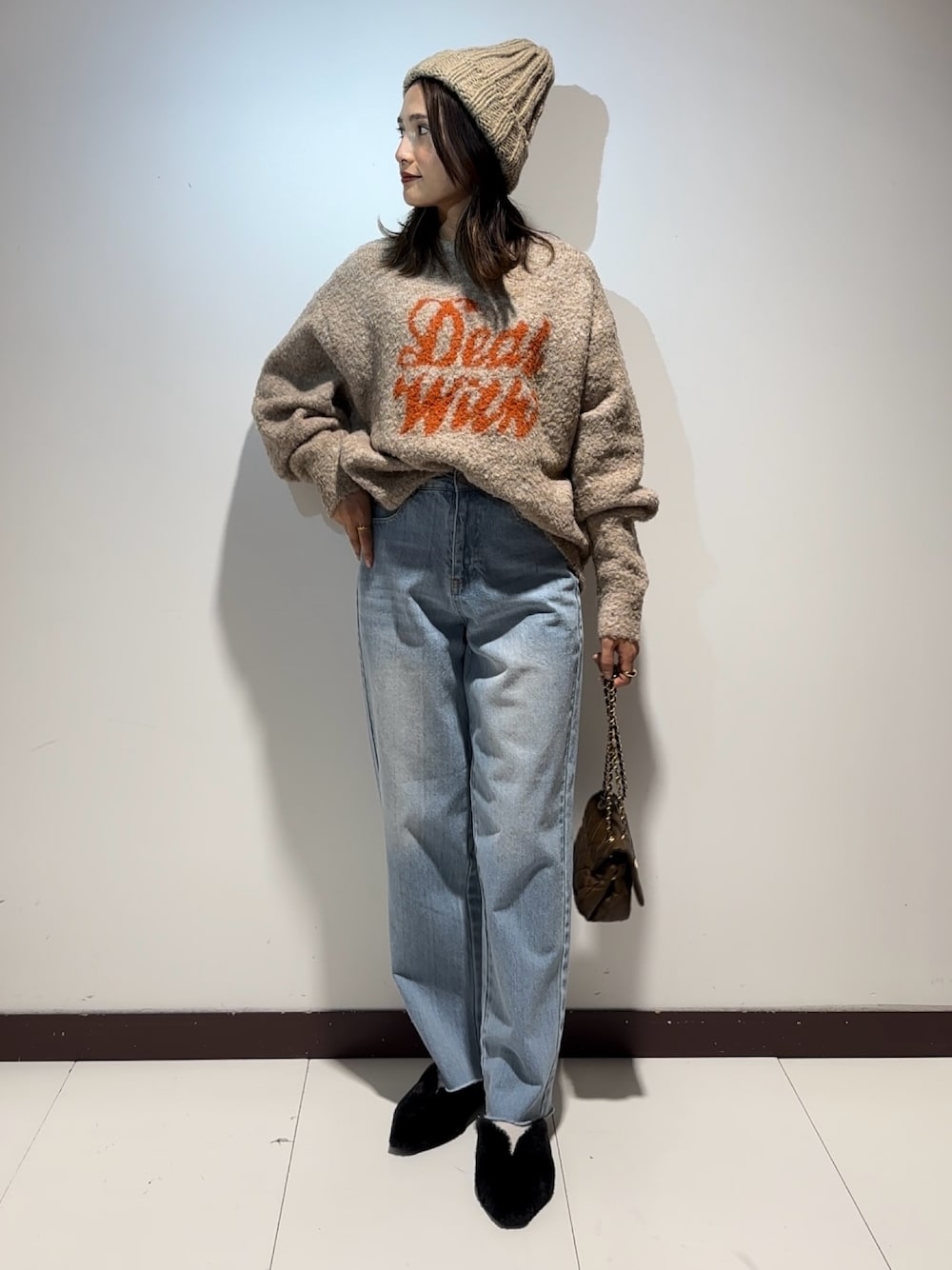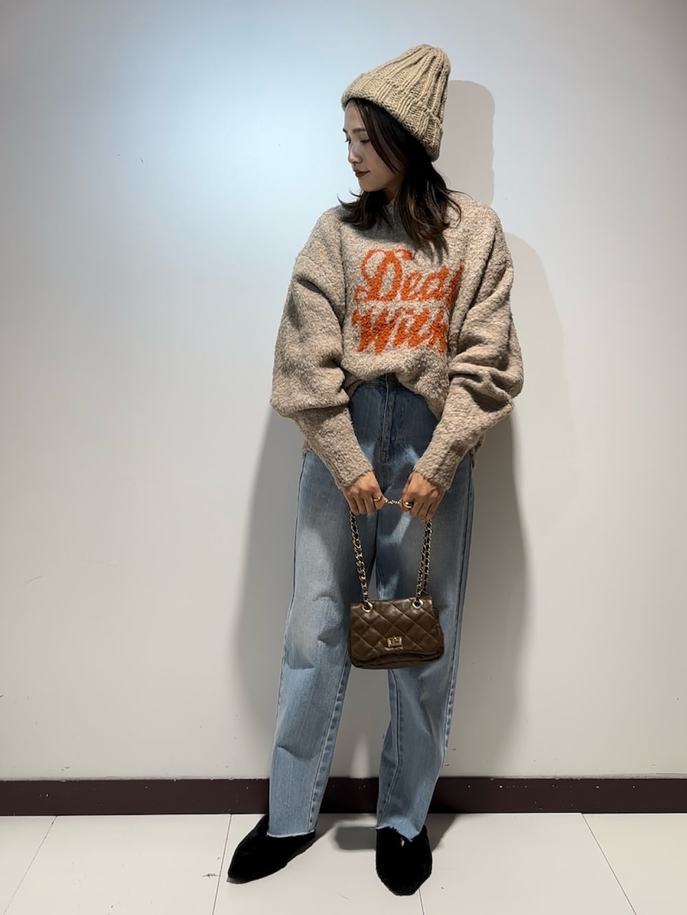 ベージュにオレンジのロゴでイエベ秋にピッタリのニット🍁
