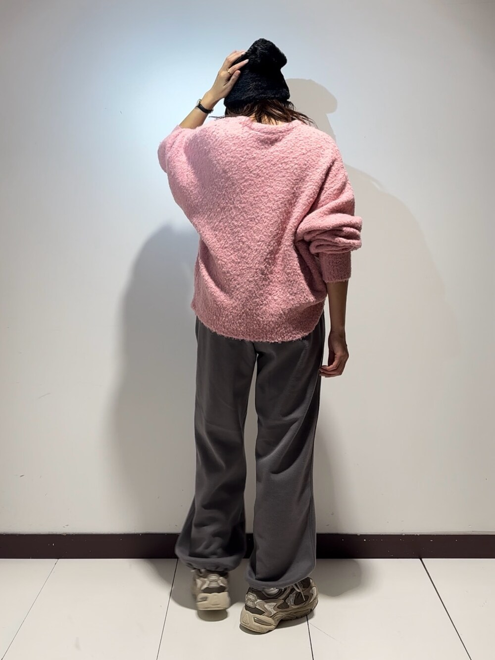 可愛くなりすぎないよう、スウェットパンツとスニーカー合わせで👟