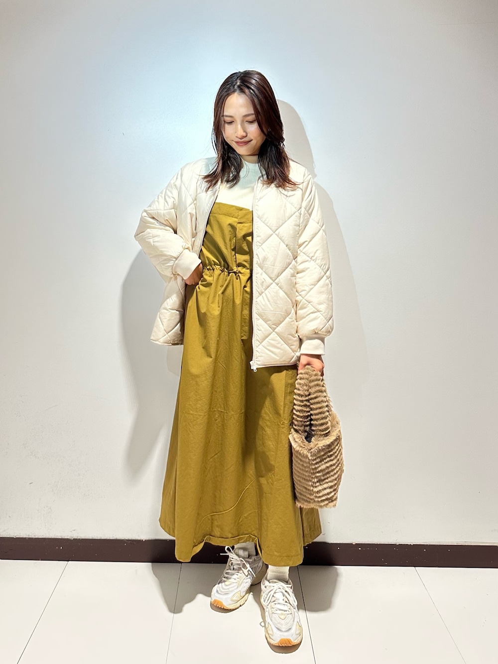 リブニットにワンピースがドッキングされていて楽ちんにコーデが決まります❤️