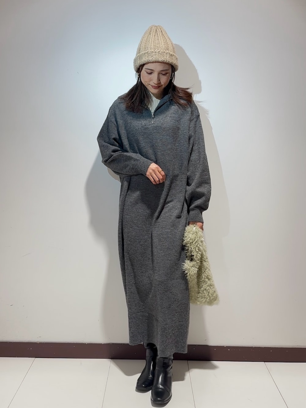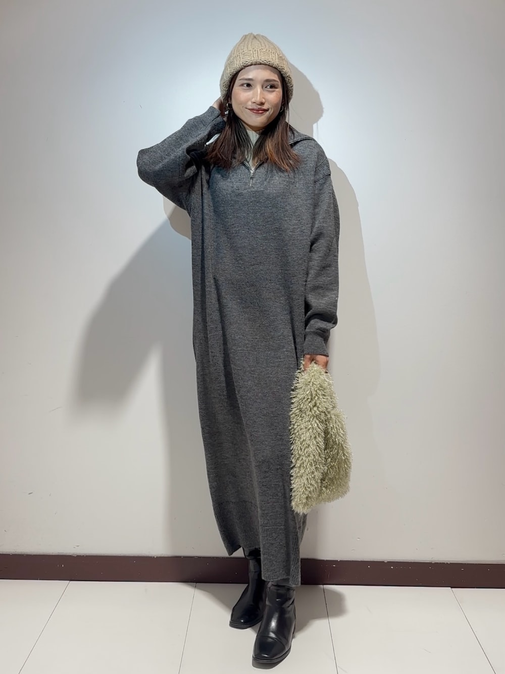 ハーフジップニットワンピース