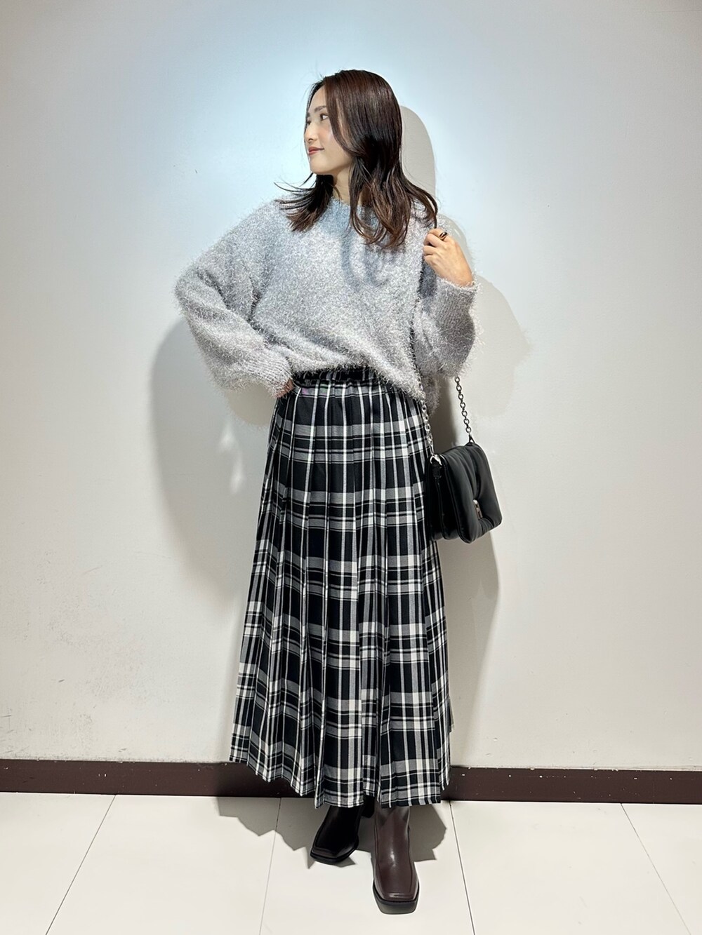 チェックスカートは、ウエストゴムで履きやすく体型カバーにも☺️‼️
