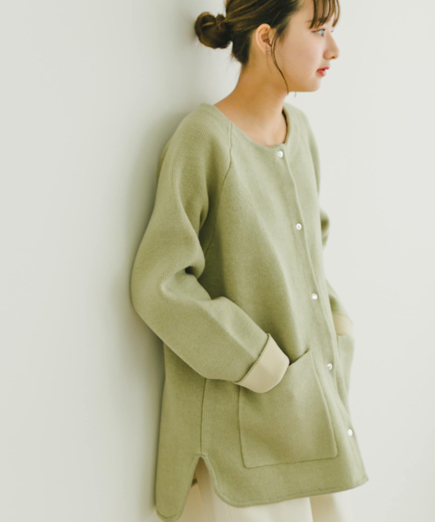 モチモチした生地感の厚地ニットカーデはこれからの季節アウターとしても使えそうです‼️