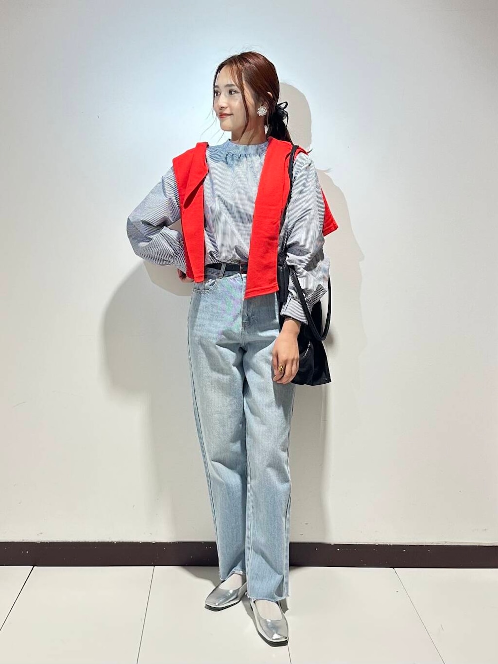 細いストライプ柄なので、強調されにくく柄物が着慣れない方でもチャレンジできそうです😊