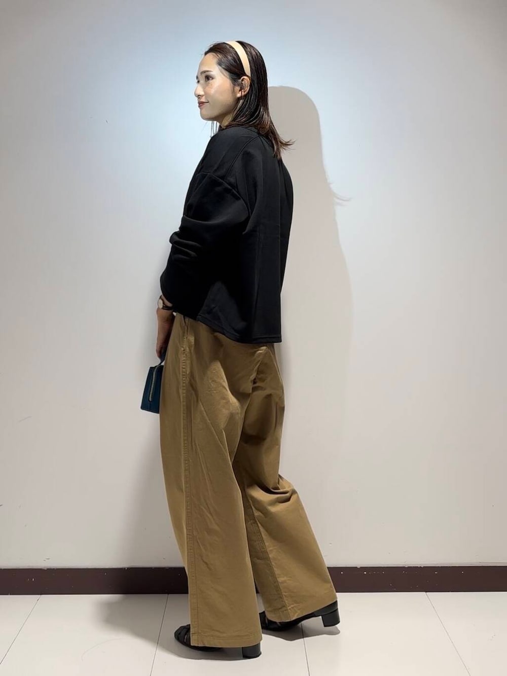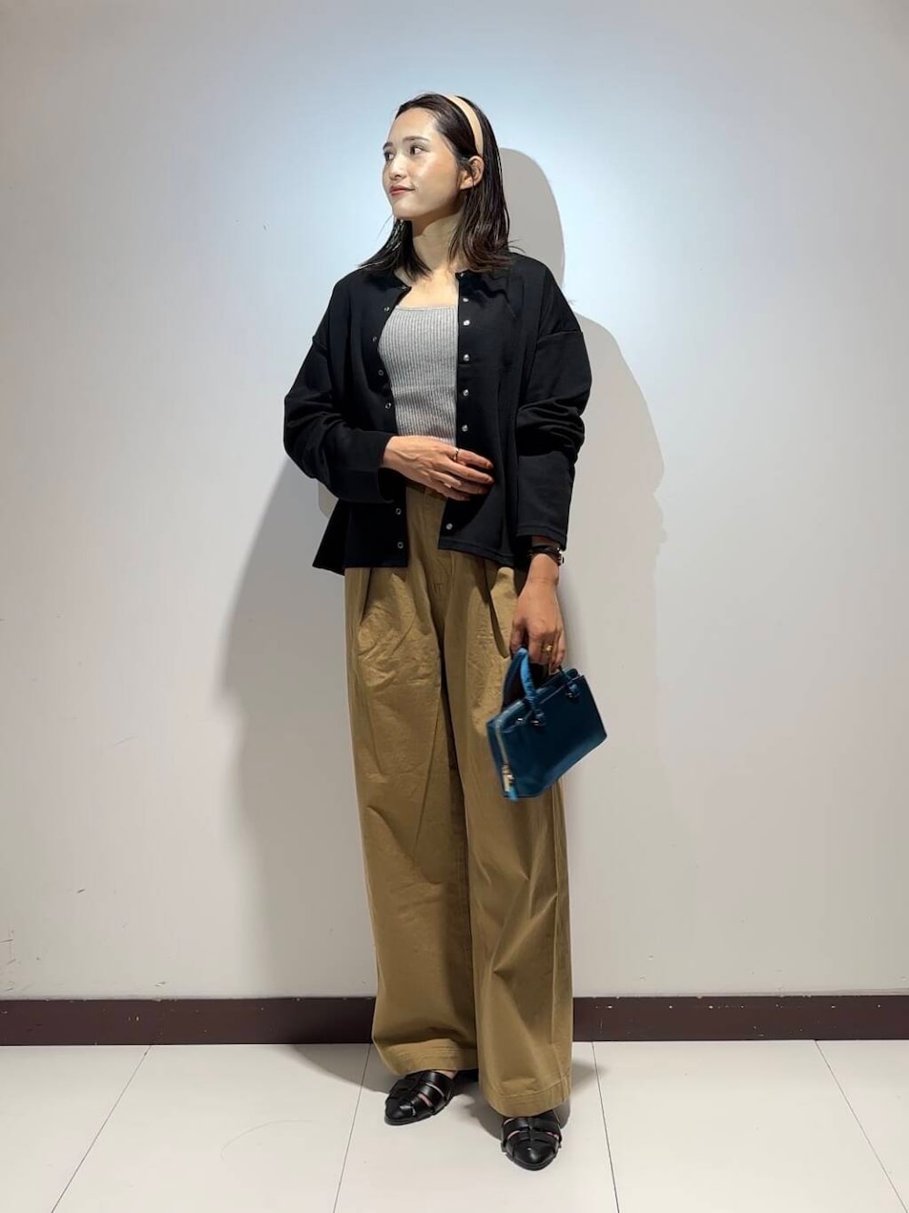 ワイドパンツで体のラインをひろいにくく、タックが入っているので、トップスをinしても綺麗なシルエットになります。