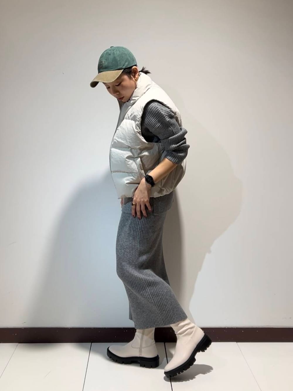 全体的に似た色味でまとめたので、大好きなキャップで色味を足しました!