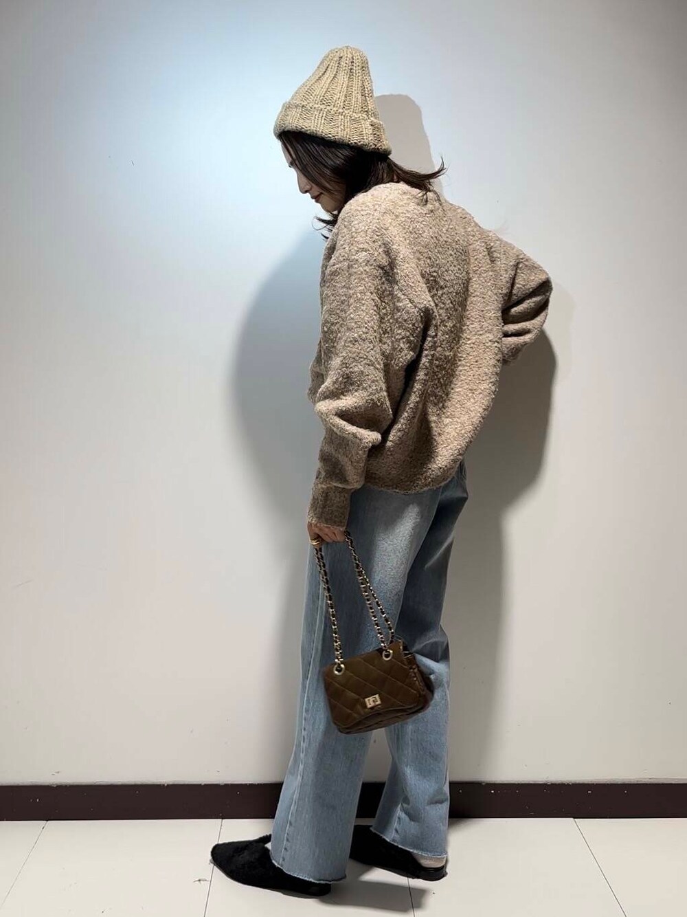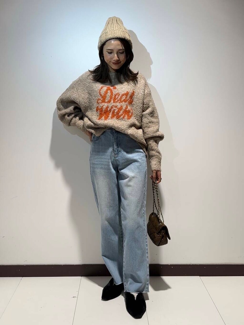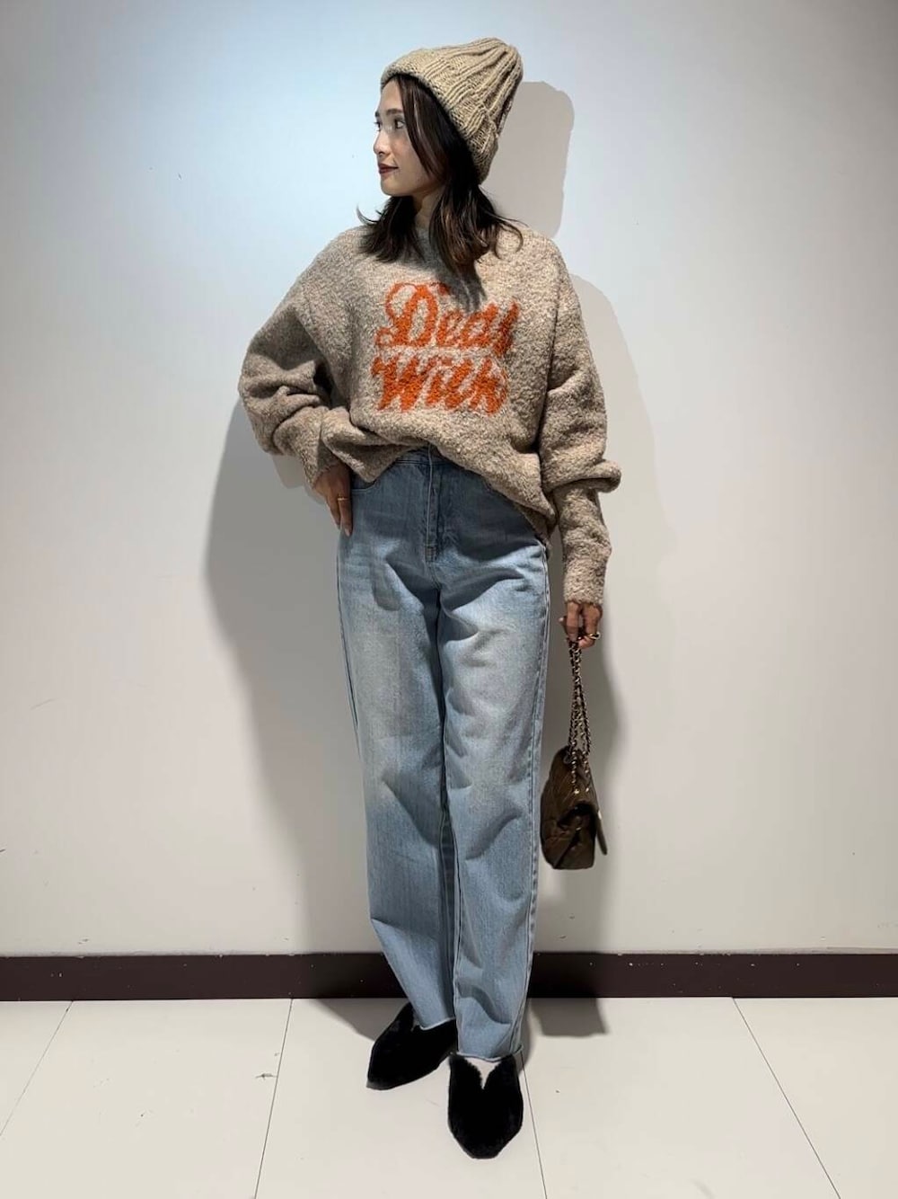 ベージュにオレンジのロゴでイエベ秋にピッタリのニット🍁
