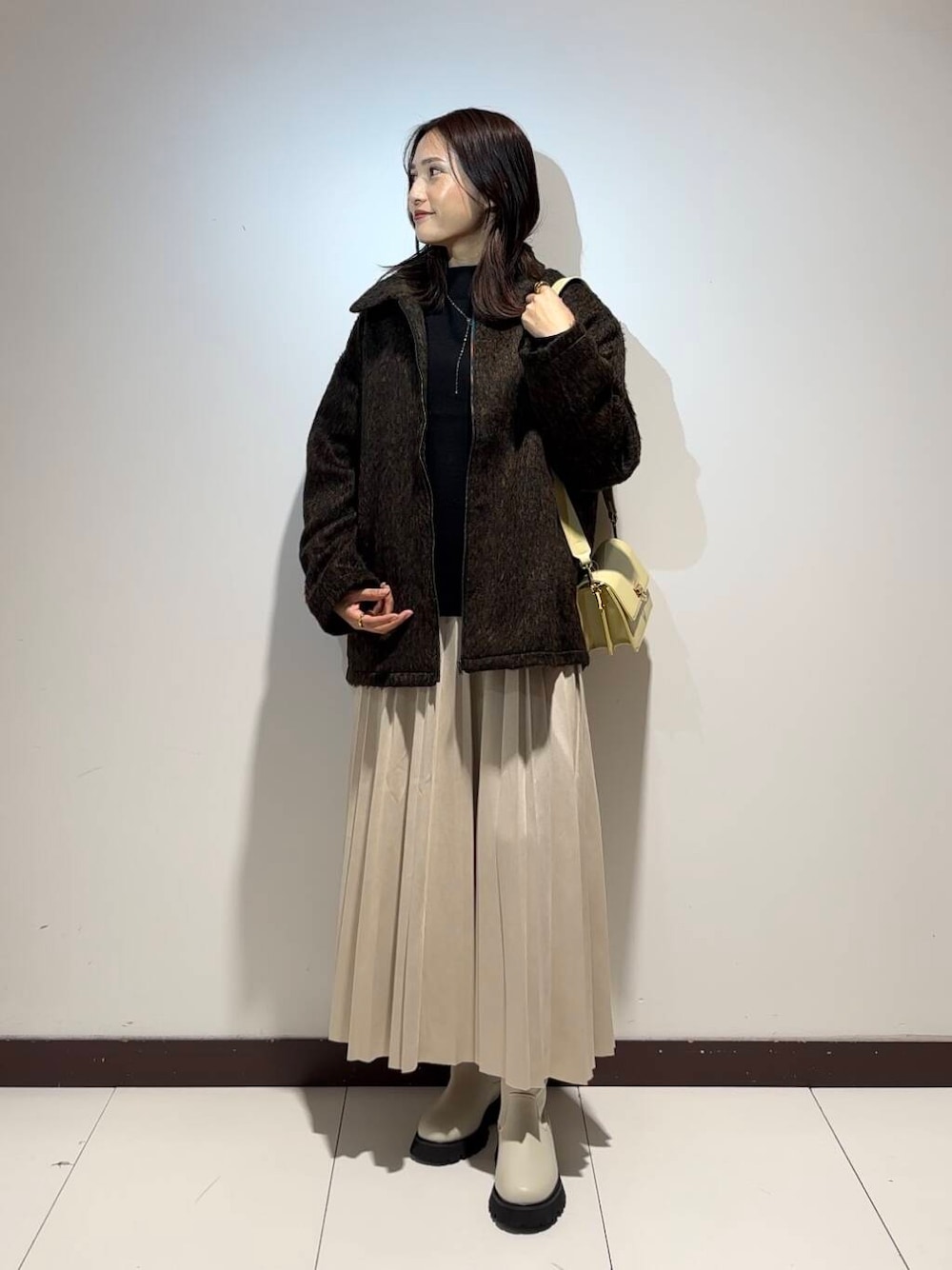 毛足の長いシャギー素材のジャケットはトレンドっぽくて可愛いです🥹