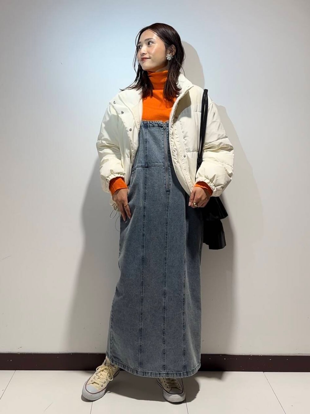 オレンジのニットの組み合わせ可愛いです(*´`)