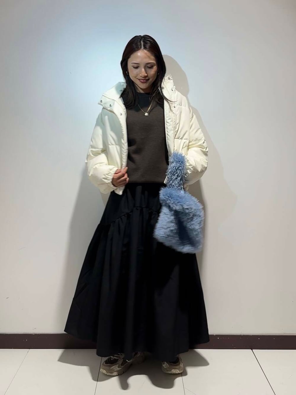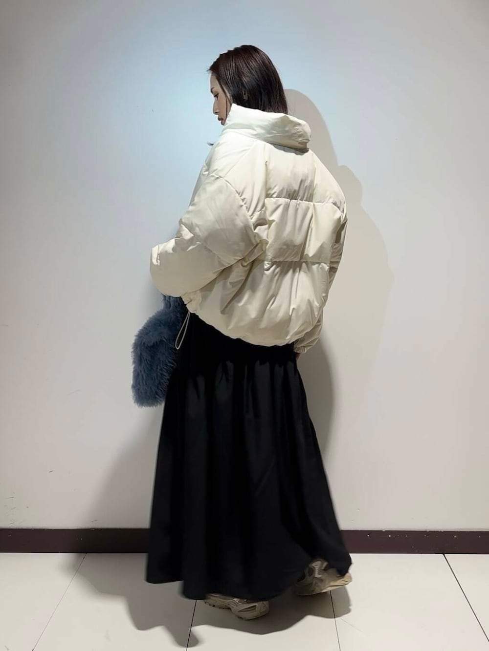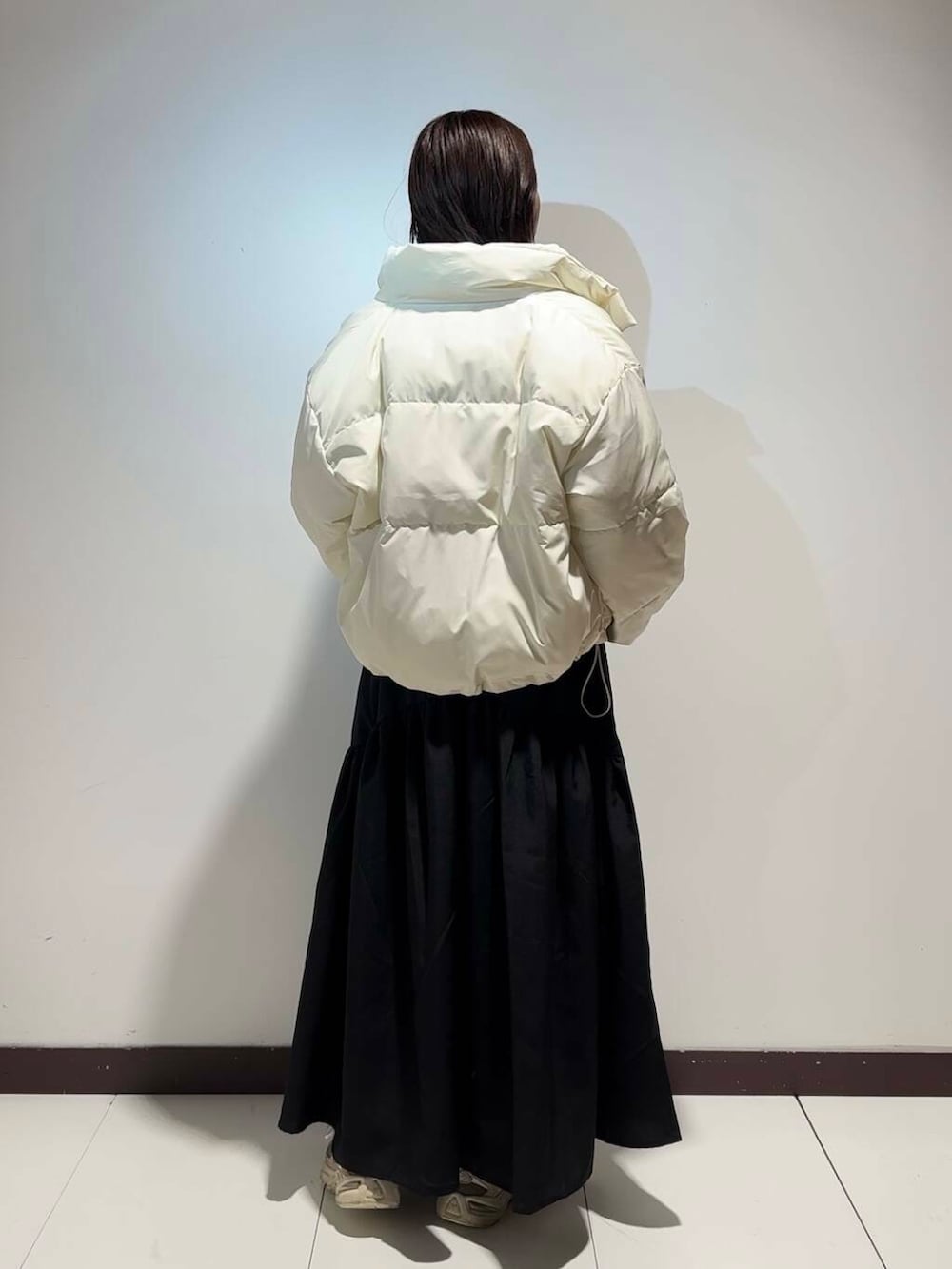 中綿スタンドジャケットは、ショート丈なのでスタイルアップに👍