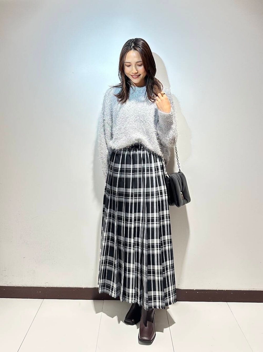 チェックスカートは、ウエストゴムで履きやすく体型カバーにも☺️‼️