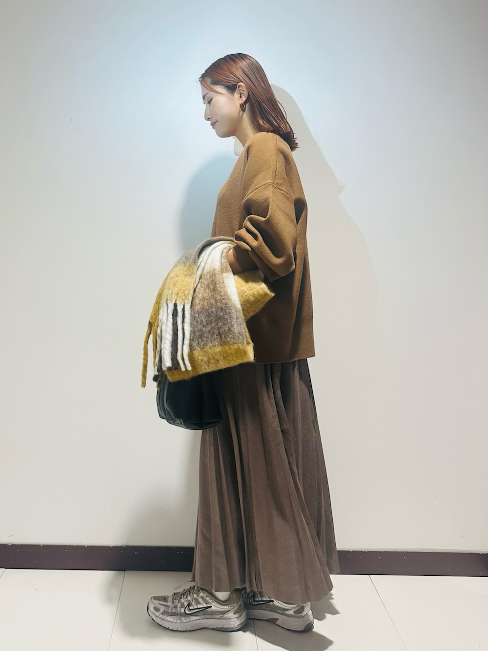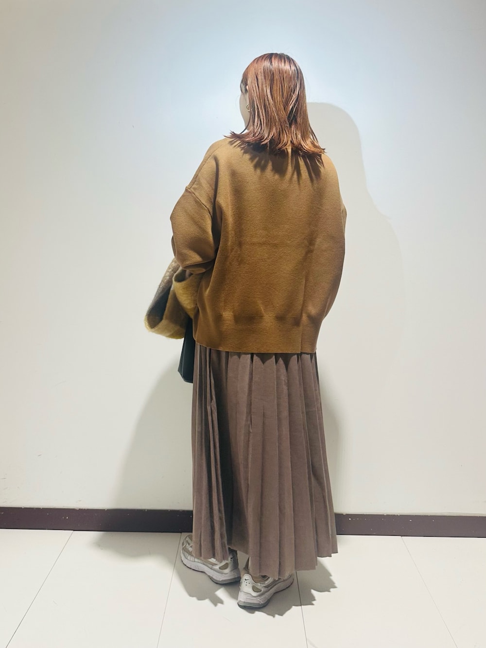 オーバーサイズなニットは、Vネックでキレイめな印象を与えてくれます!