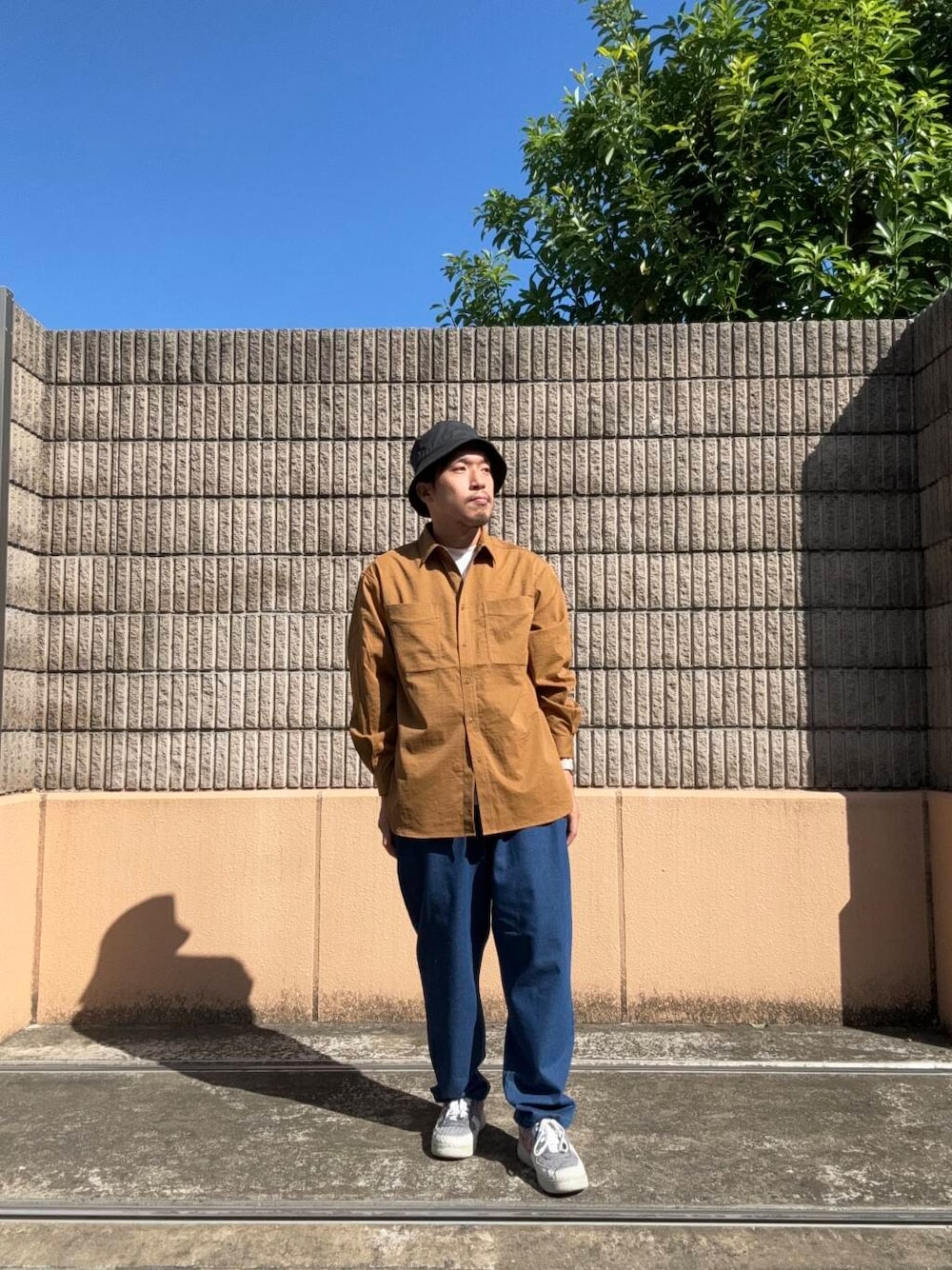 ダブルポケットのワークテイストに加えて表面に施したしわ加工がスタイリングのアクセントとなる1着