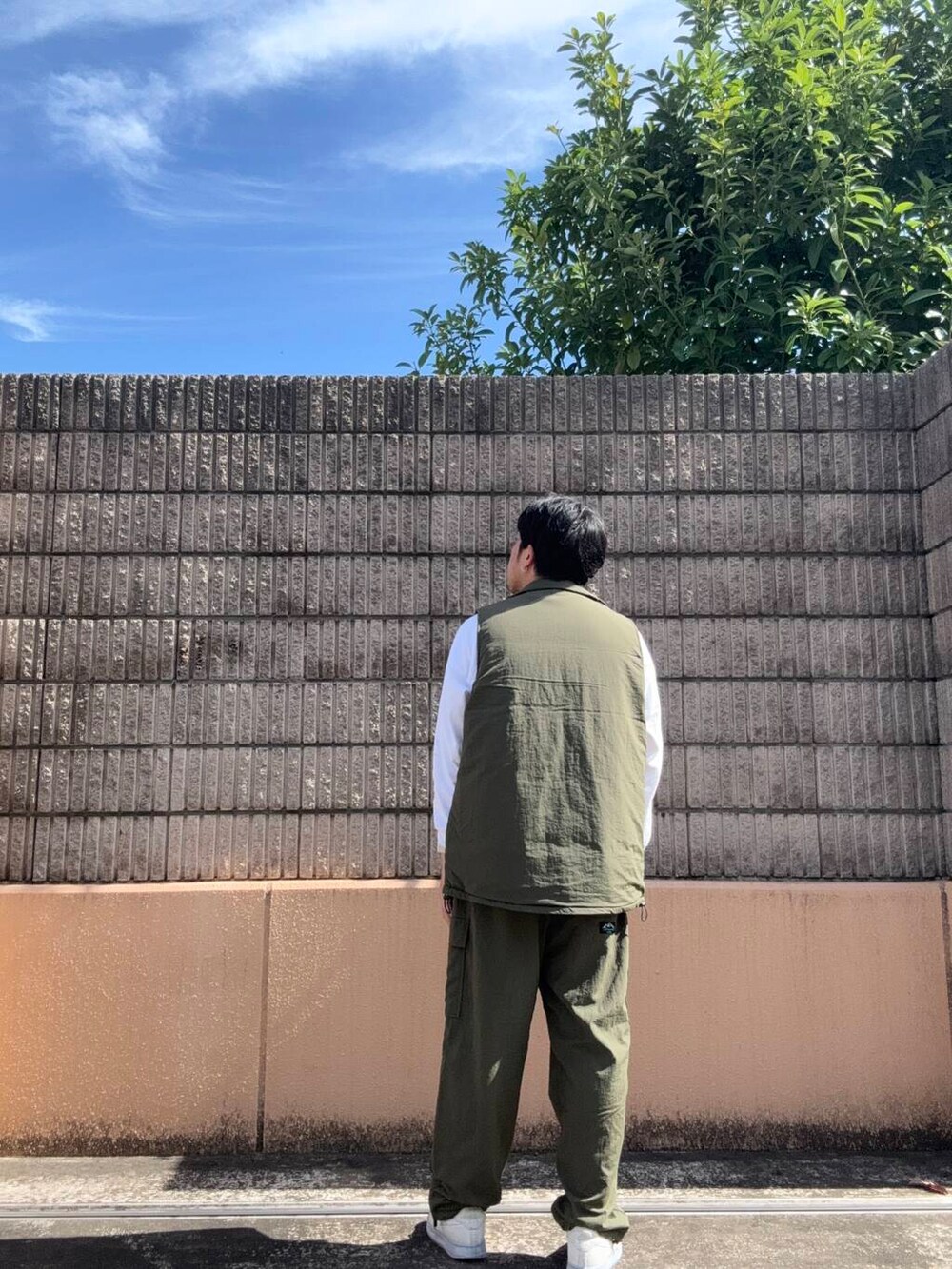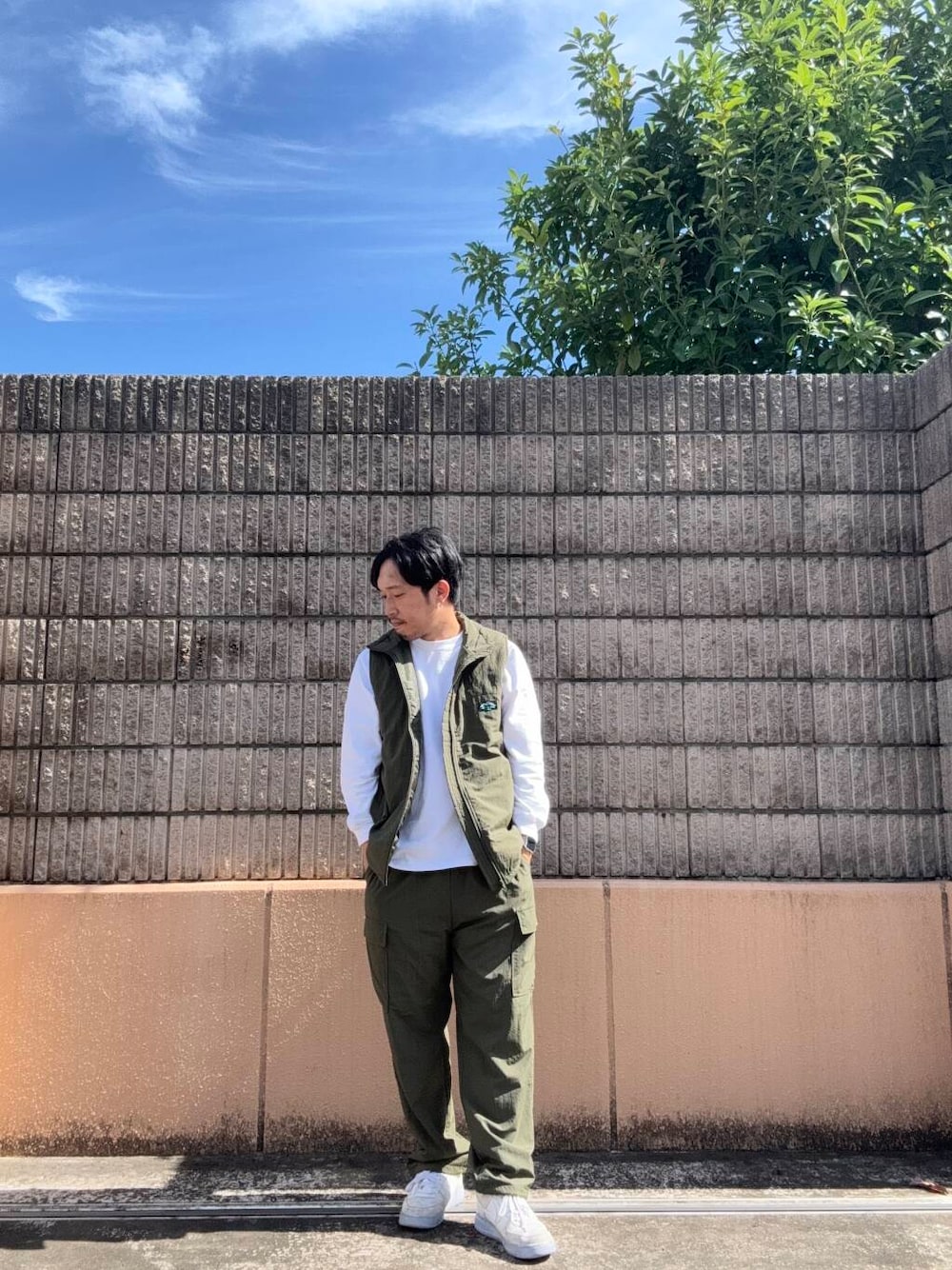 ゆとりがある作りなので少し厚手のスウェット、ニットなどの合わせても窮屈感なく着用いただけます。