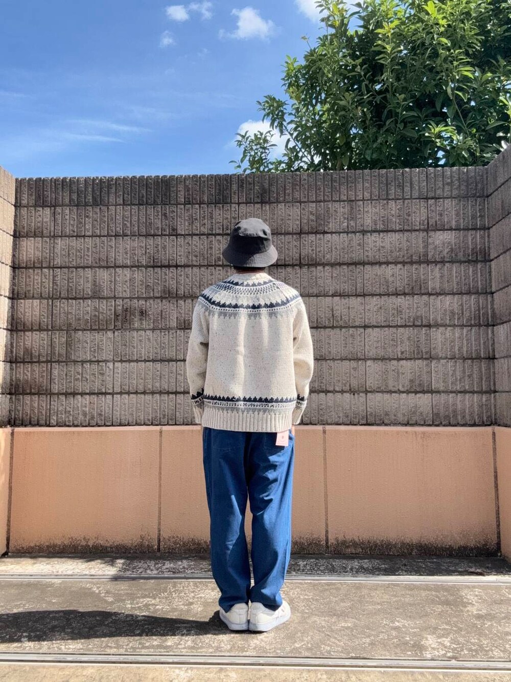 程よくゆとりのある作りなのでスウェットなどの少し肉厚なインナーと合わせても窮屈感なく着用いただけます。
