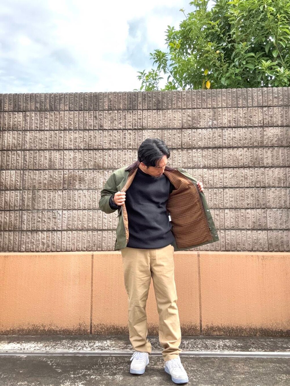 ゆとりがある作りなのでスフェット、ニットをインナーとしてお使いいただいても窮屈感なく着用していただけます。