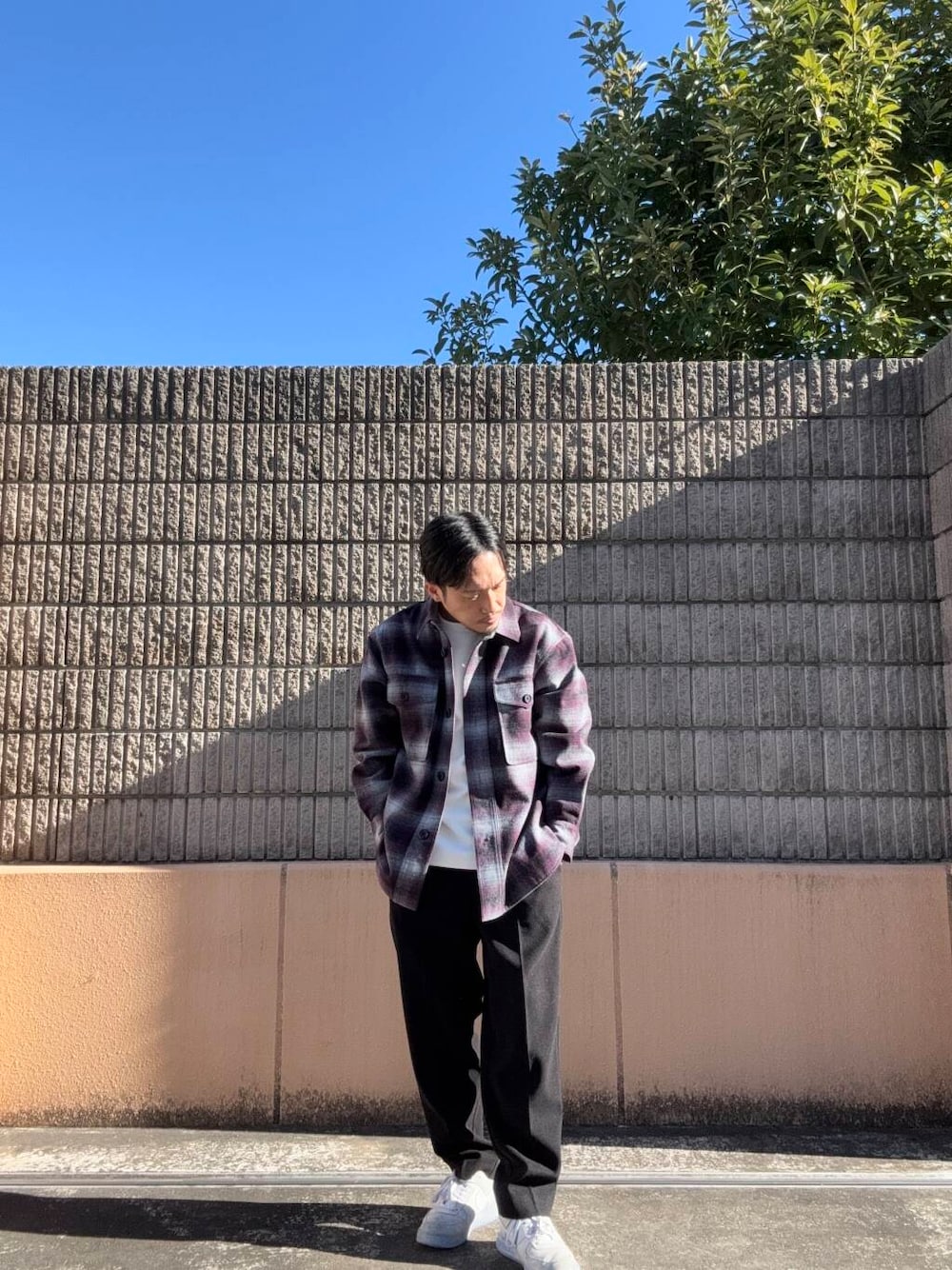 生地感もしっかりしていて保温性もよくオンブレーチェク柄が目を引き1着になっております。