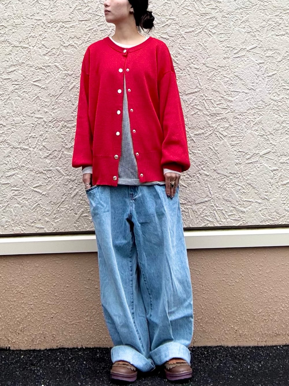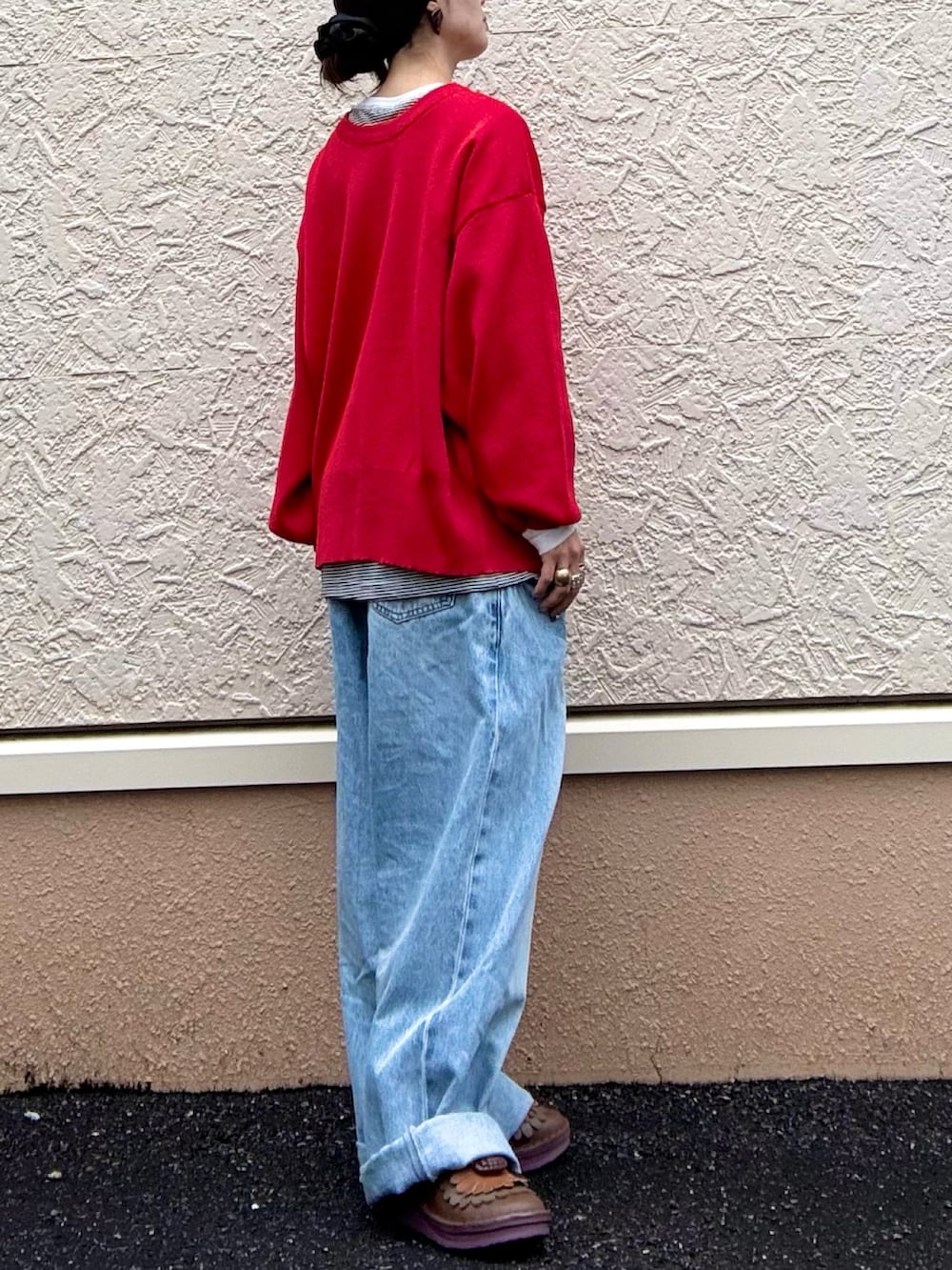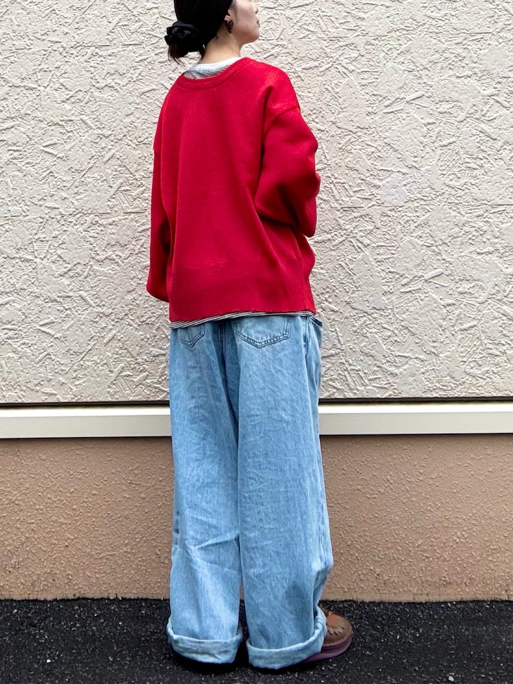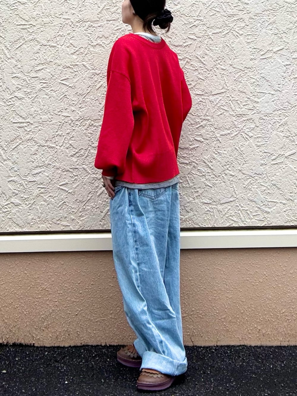 赤×ボーダー×デニムの王道コーディネートにしてみました!