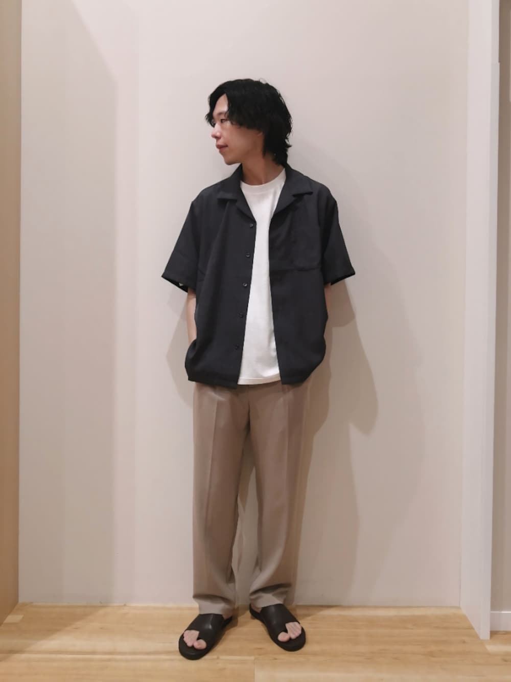 シンプルな半袖シャツを使ったコーデになります。