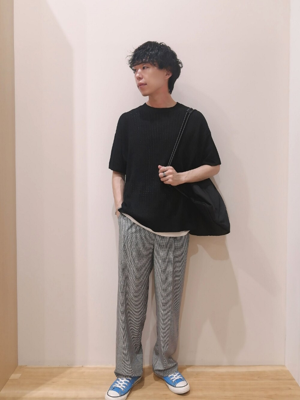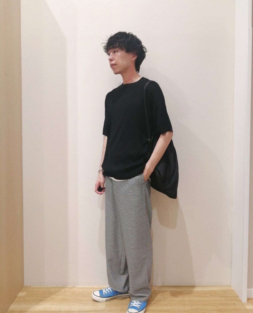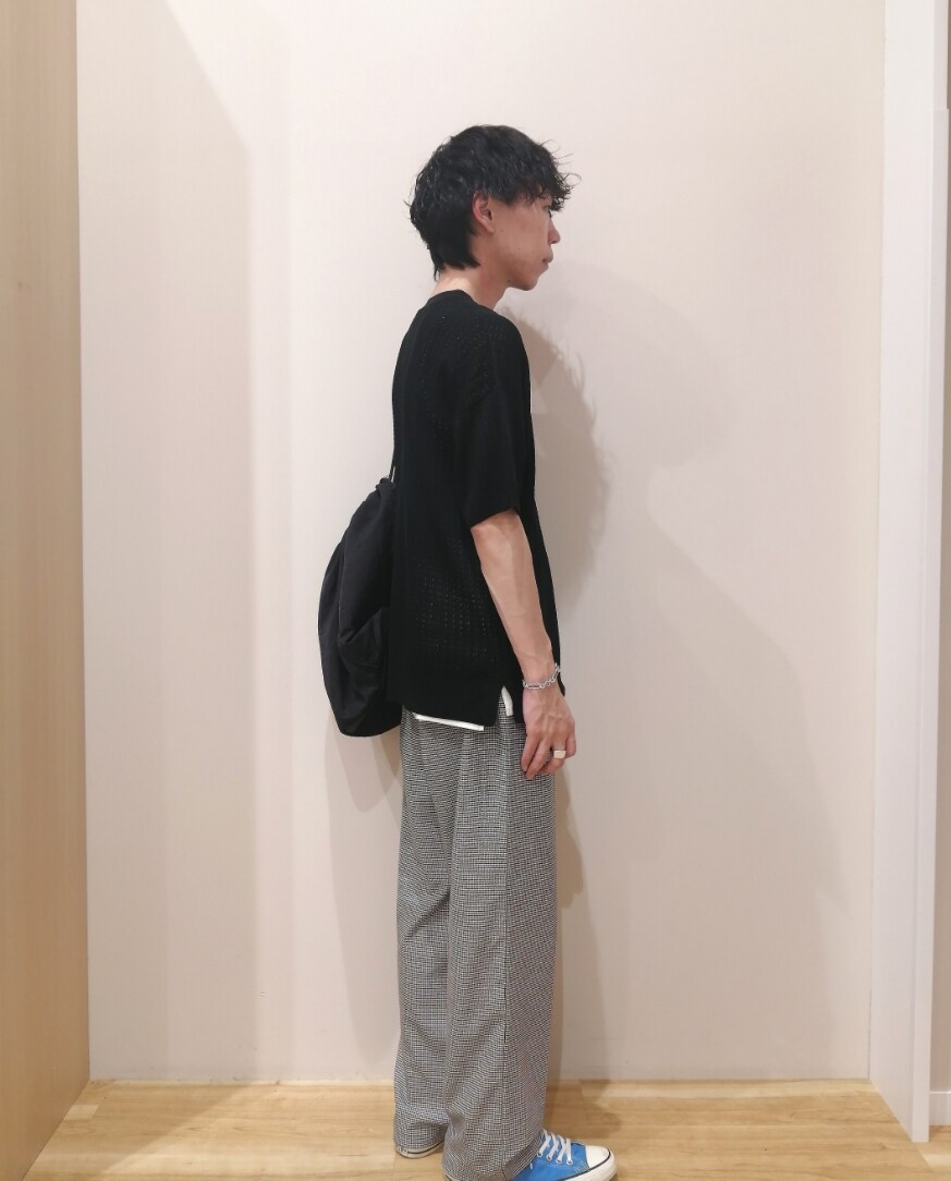 全体的にゆるいサイズ感で合わせ、涼しげのあるコーデを意識しました。