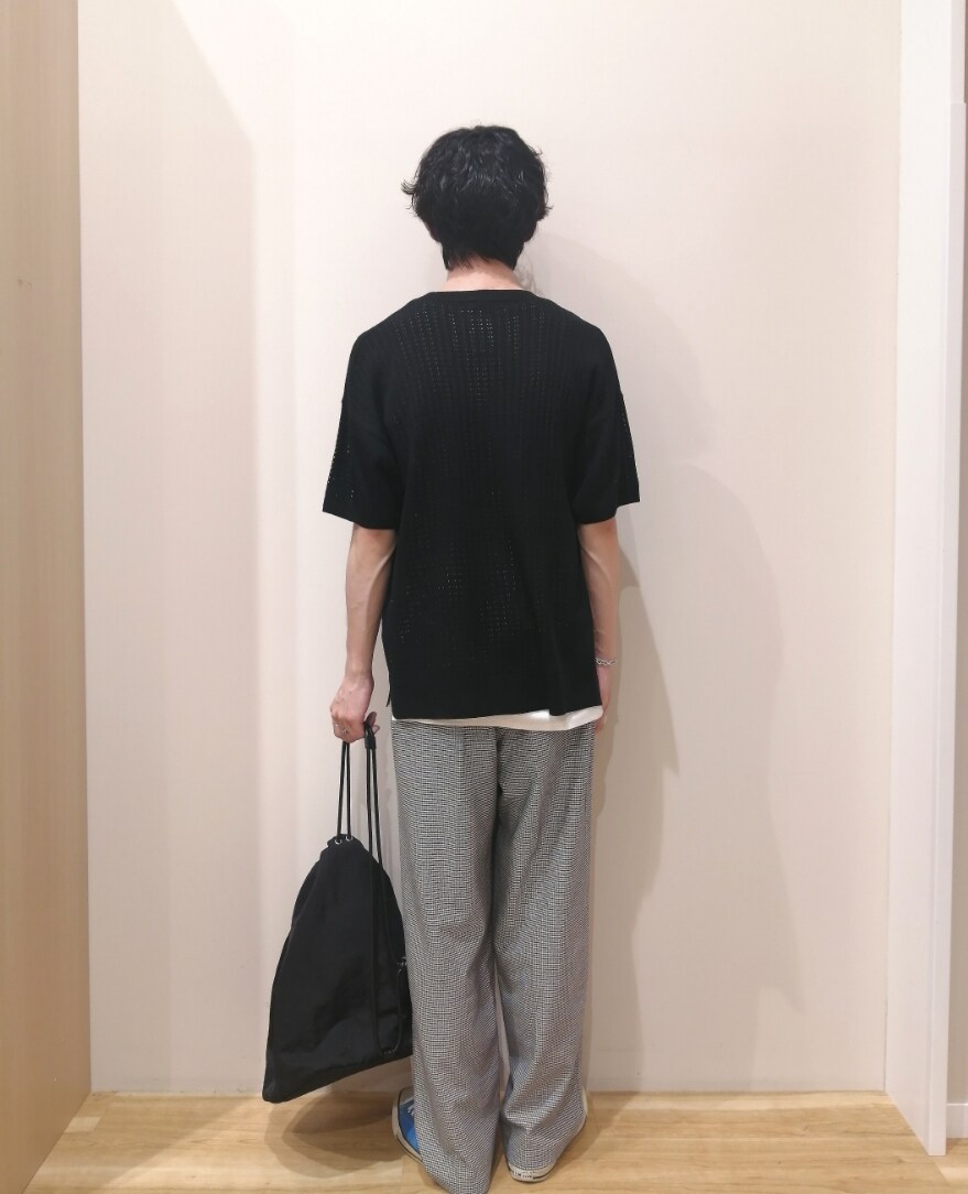 メッシュニットを使った夏コーデになります。