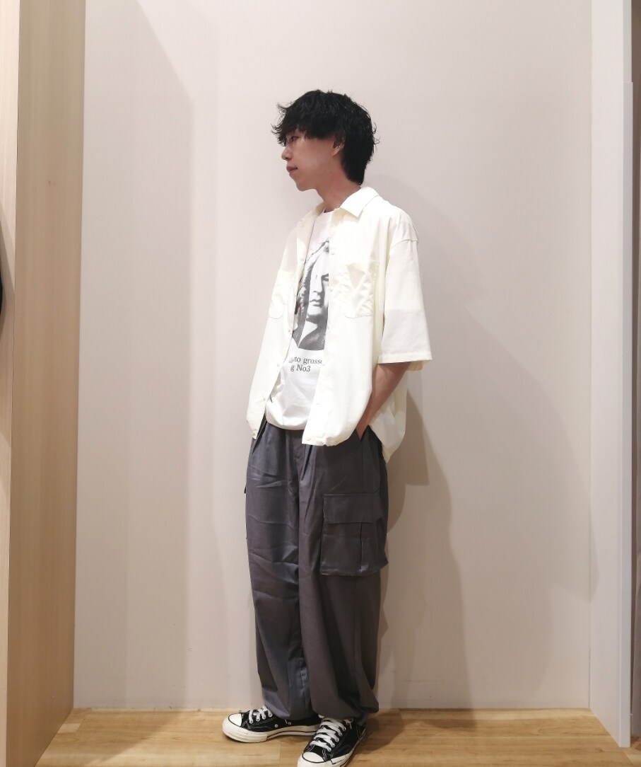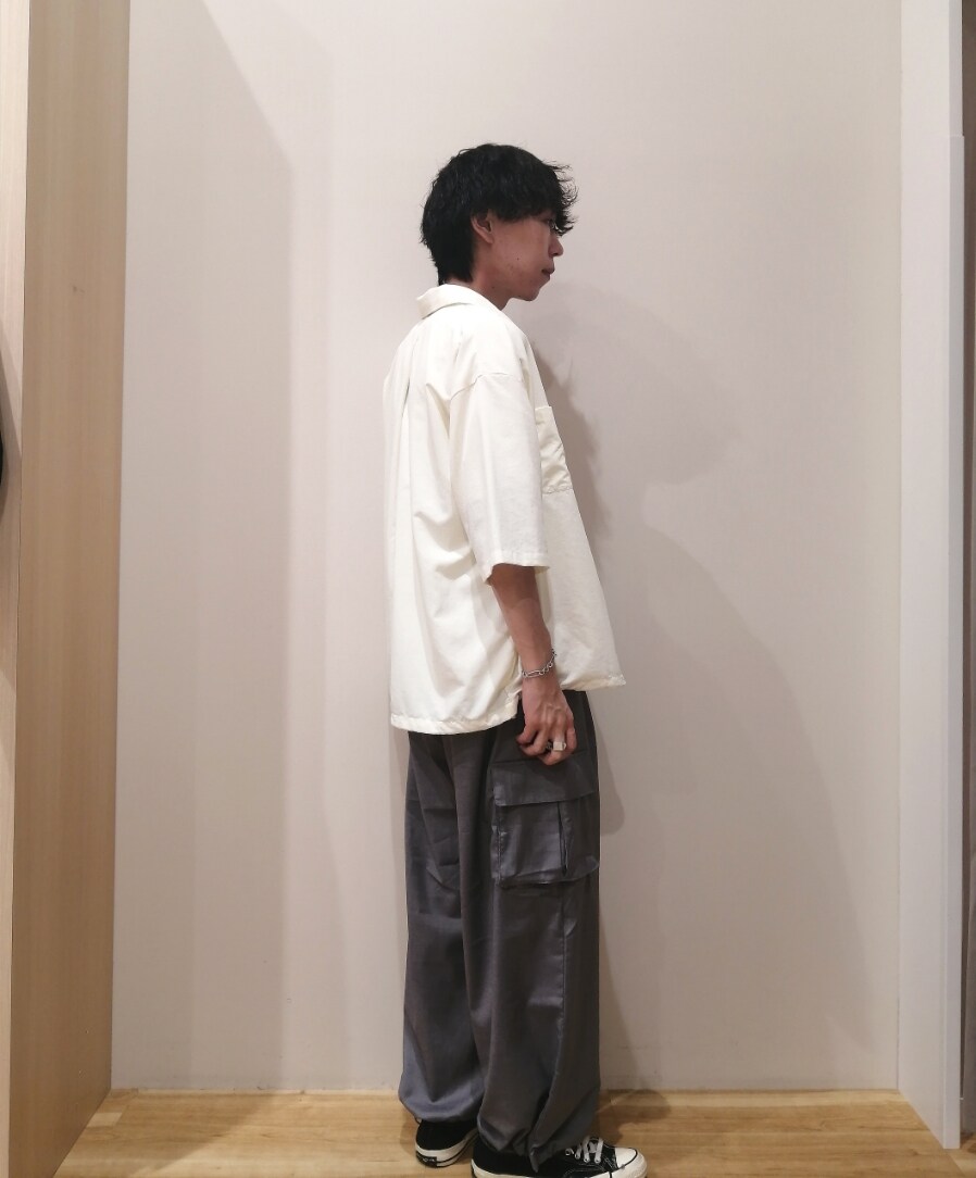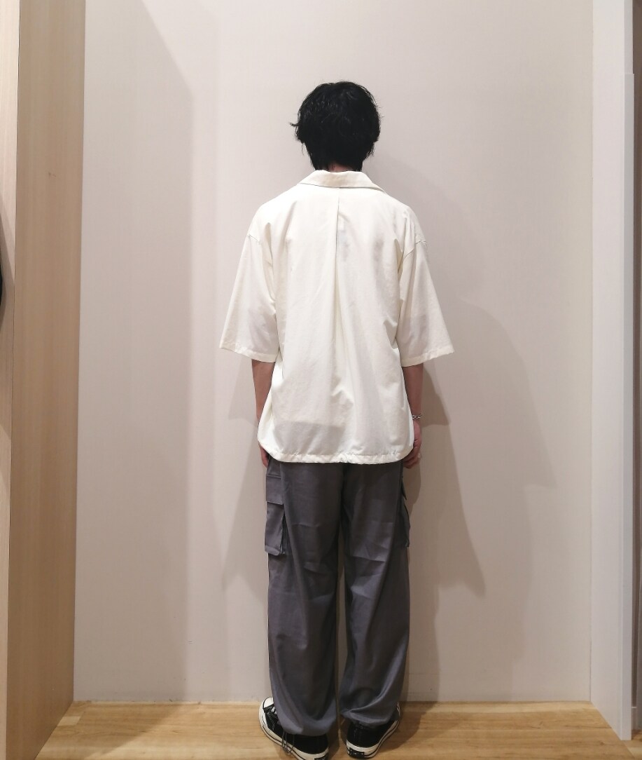 シャツはドローコードが付いているので、一枚で着用してシルエットの変化楽しんでみても面白いです。