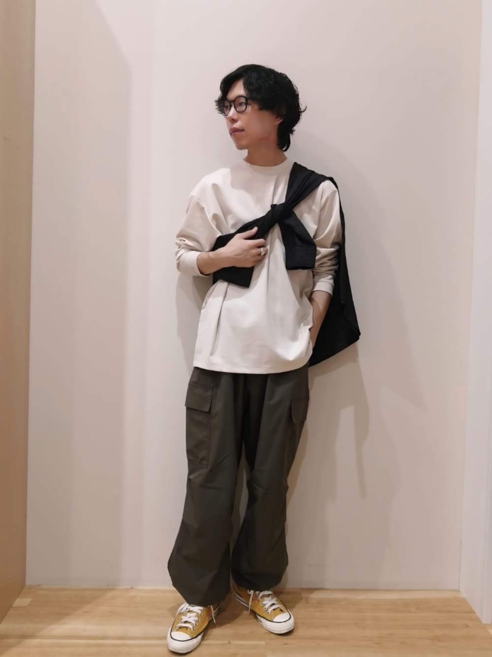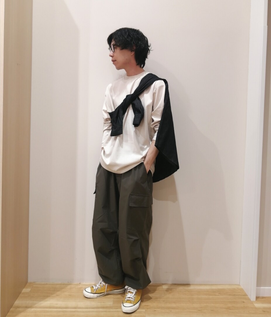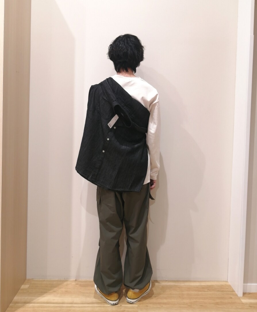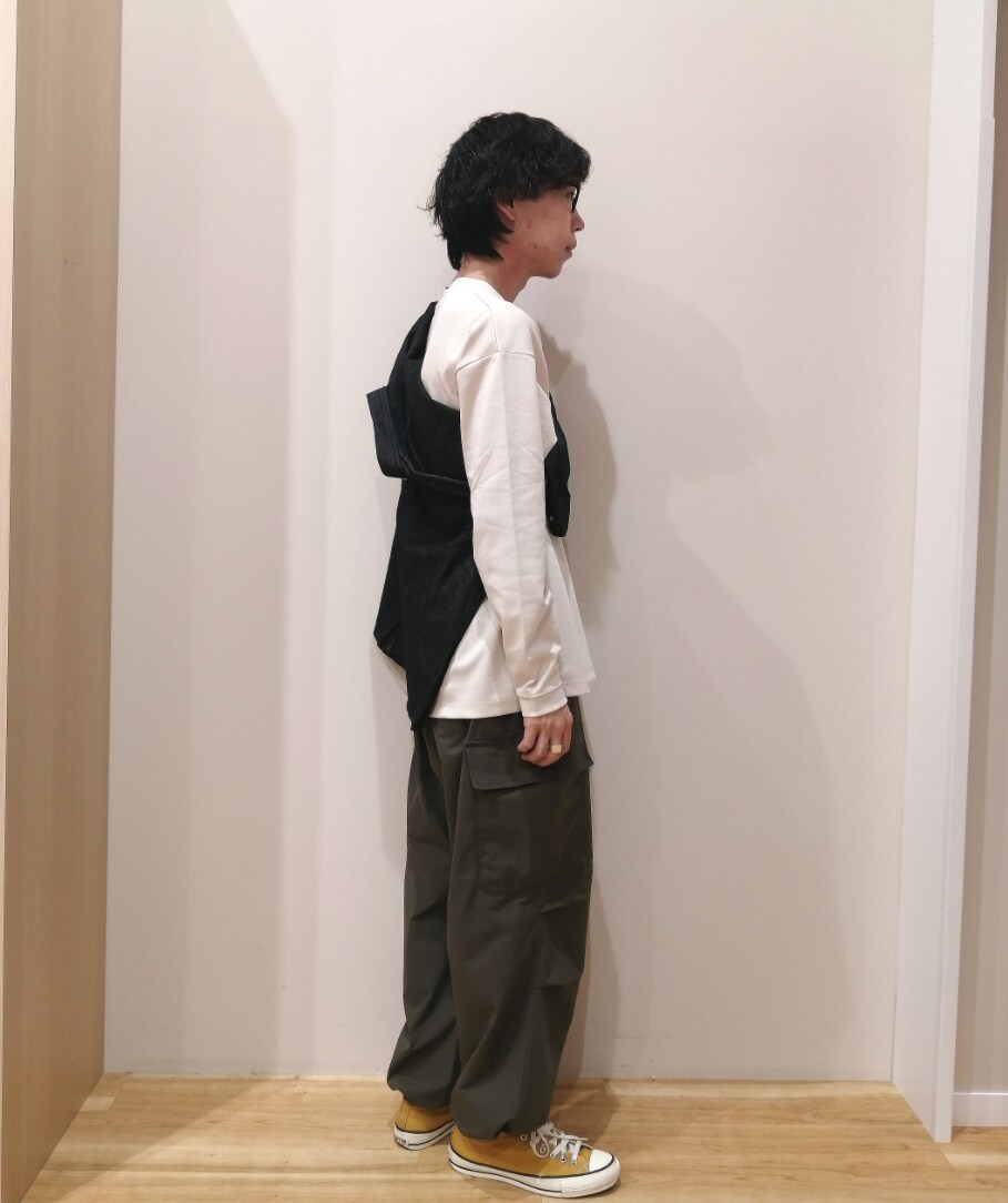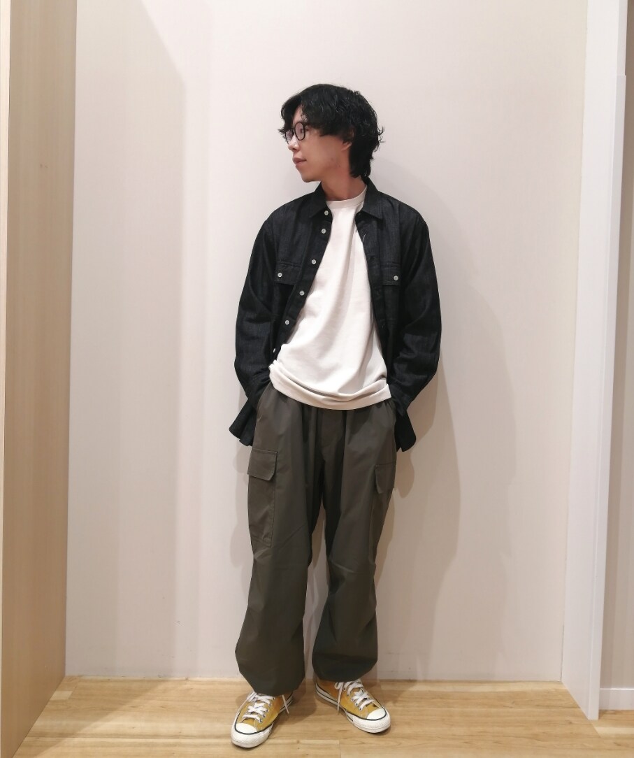 デニムとカーゴパンツ、間違いない組み合わせです。