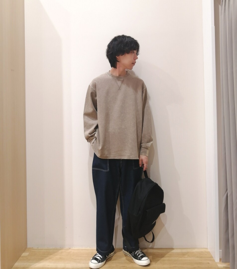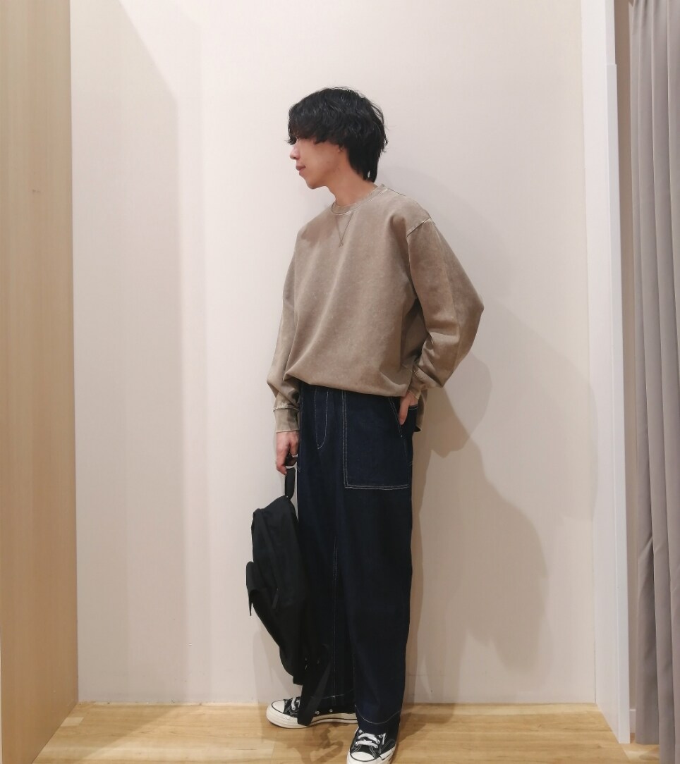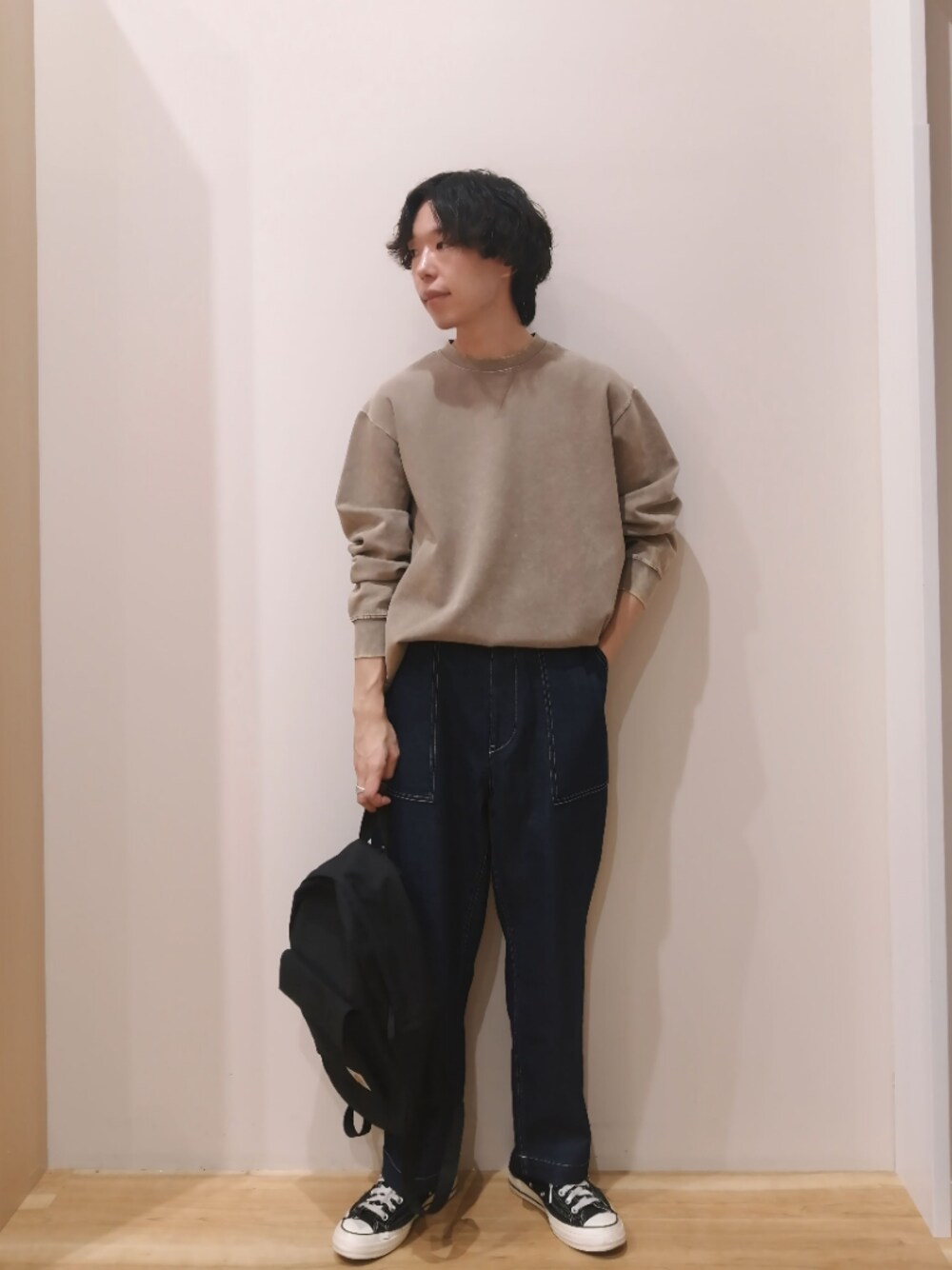 トップスはフェード加工の施された雰囲気のあるスウェットです。