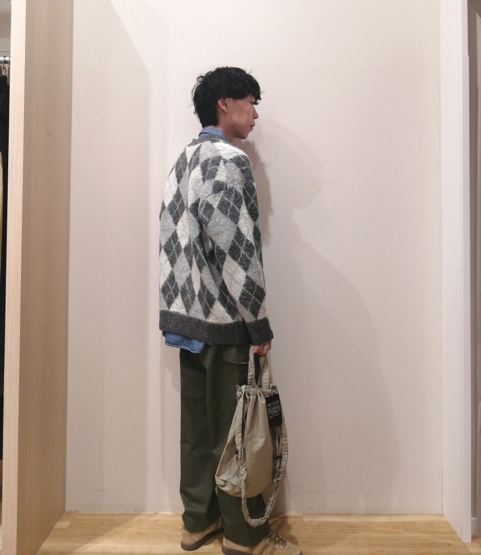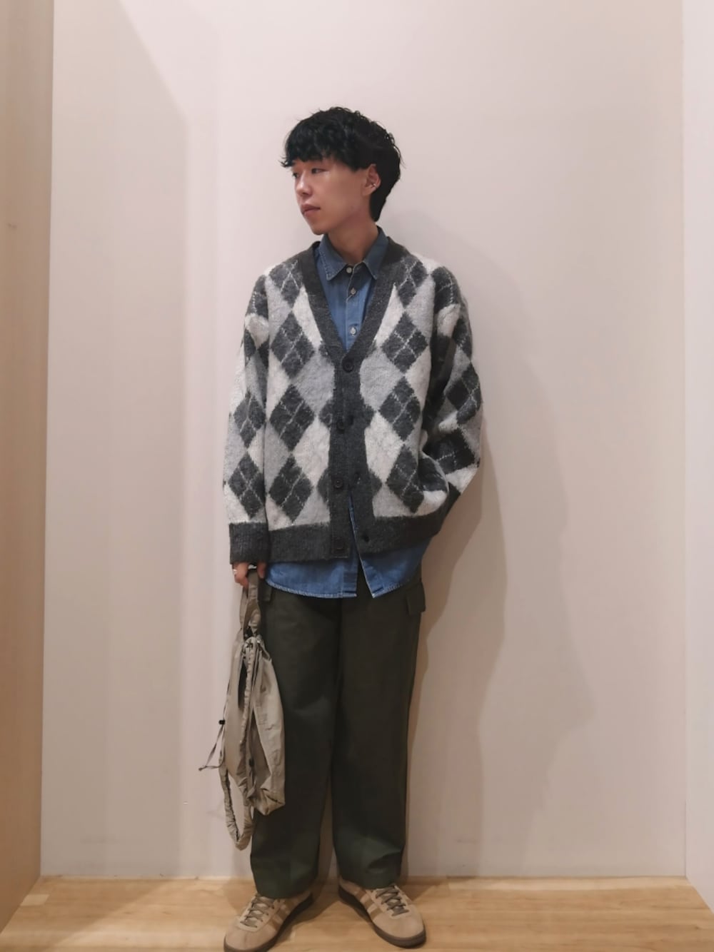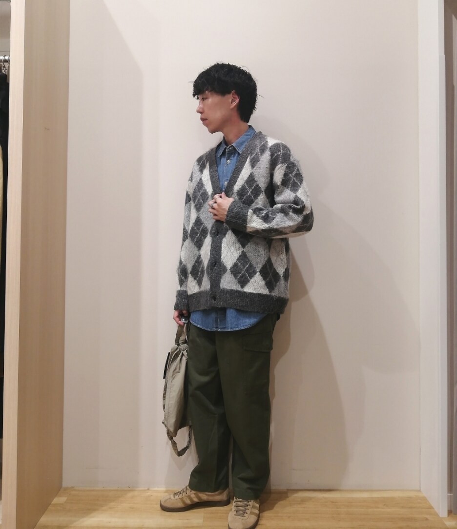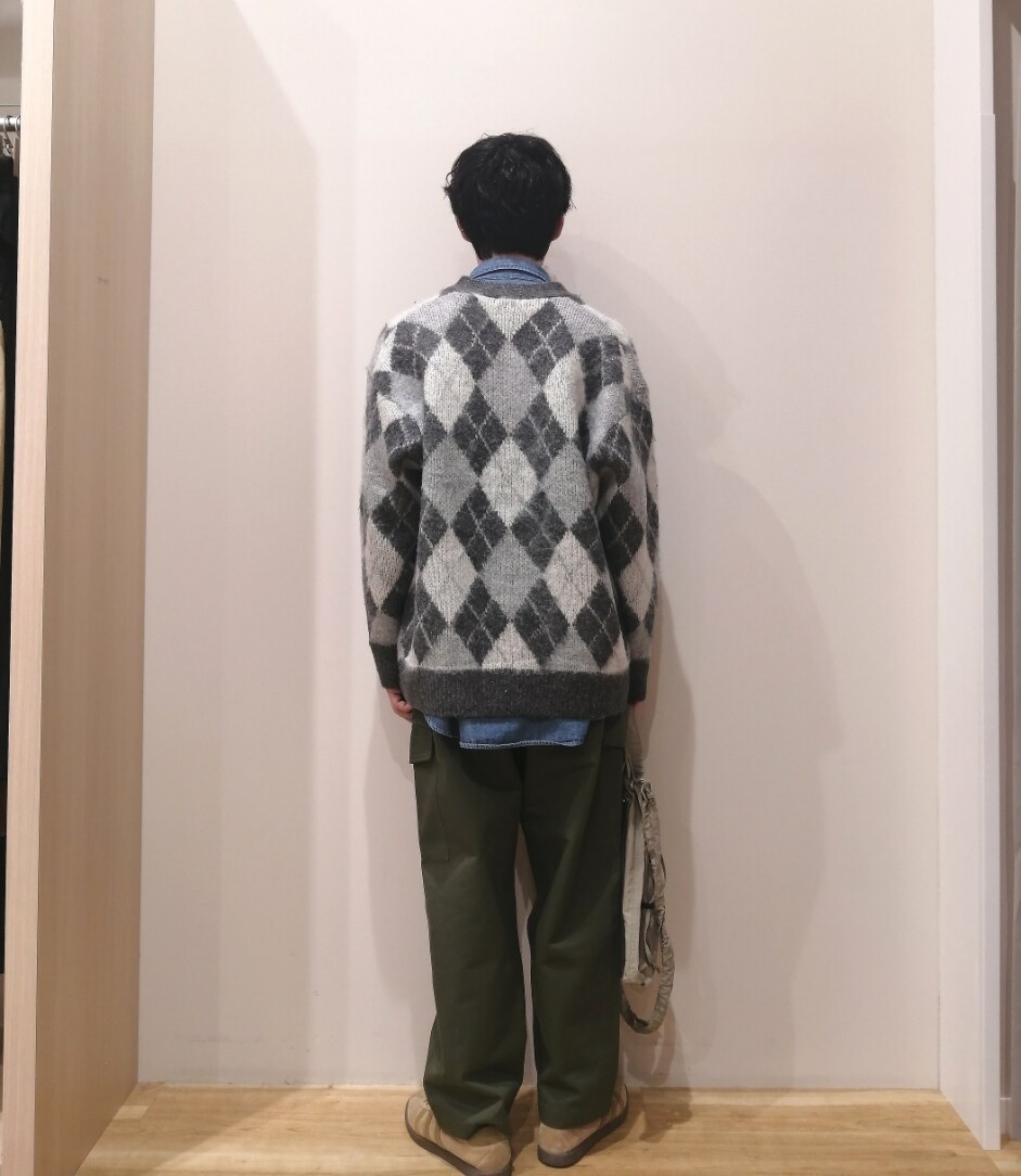 モヘアカーディガンがメインのカジュアルコーデになります。