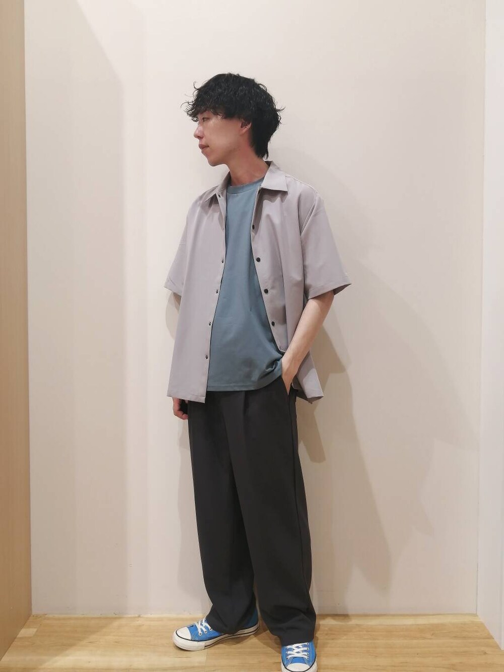 シャツ、カットソーはMサイズ、パンツはLサイズを着用しております。