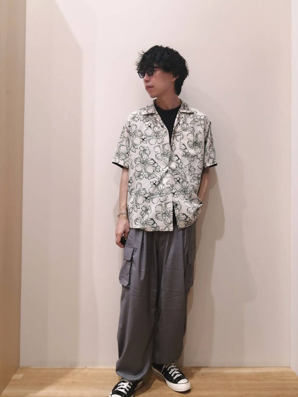 シャツとTシャツはMサイズ、パンツはLサイズを着用しております。