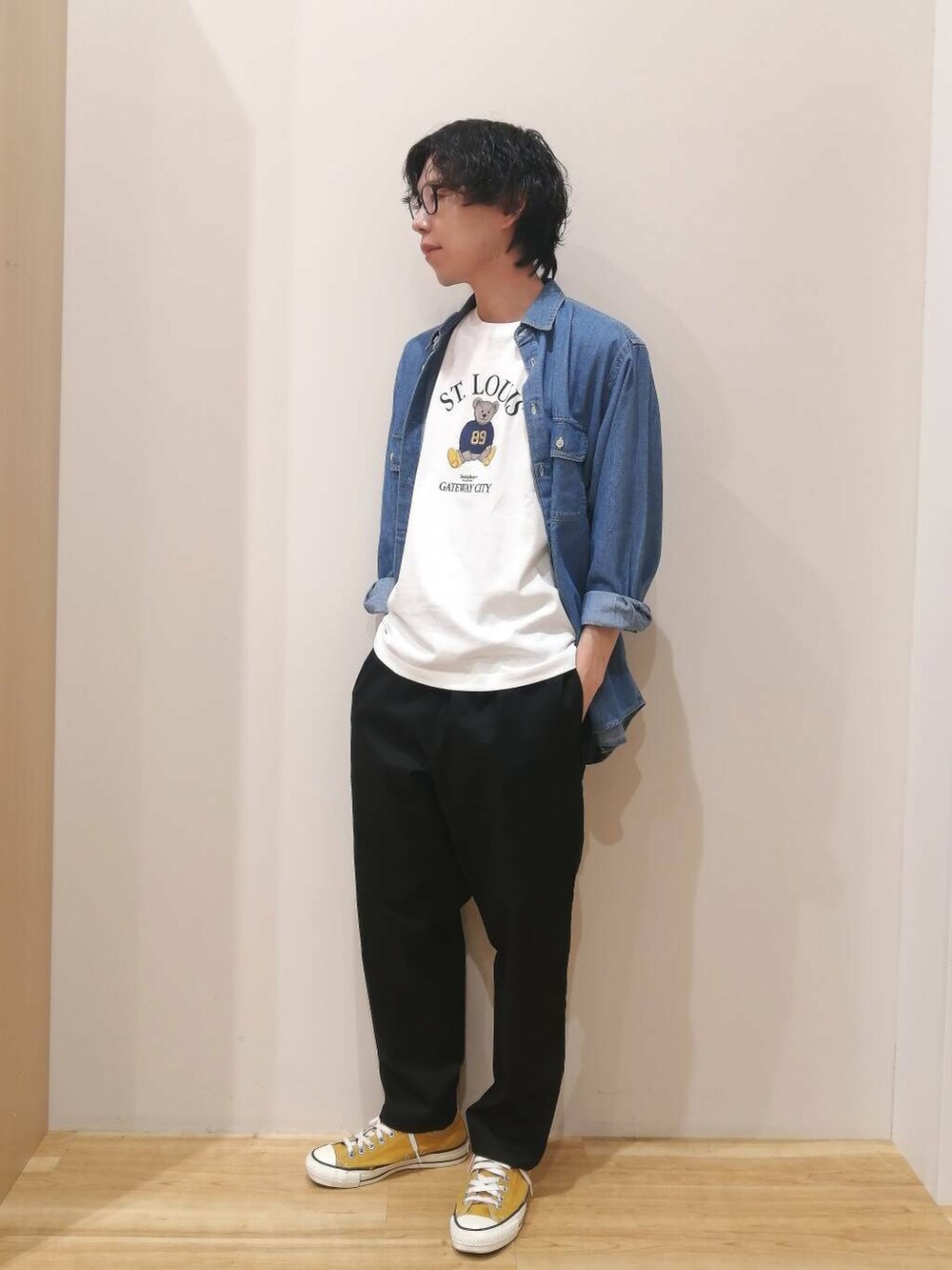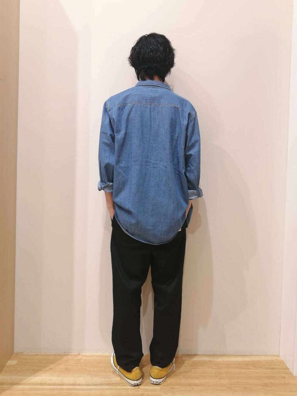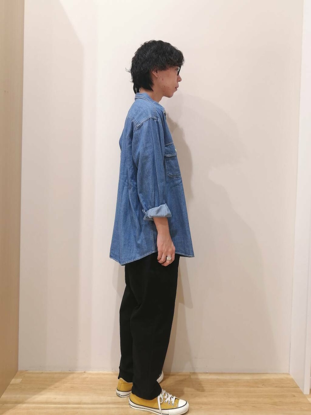 デニムシャツは、やや長めの着丈に対して袖丈はジャストサイズに近いので野暮ったくならずに着用できます。