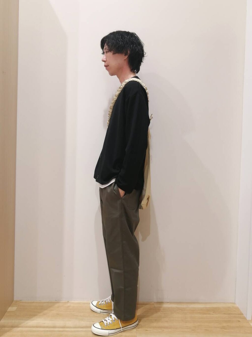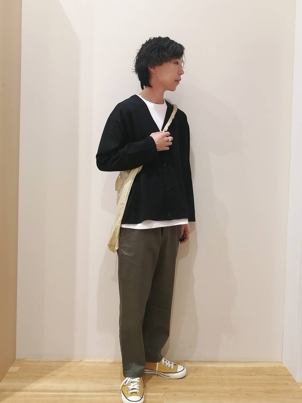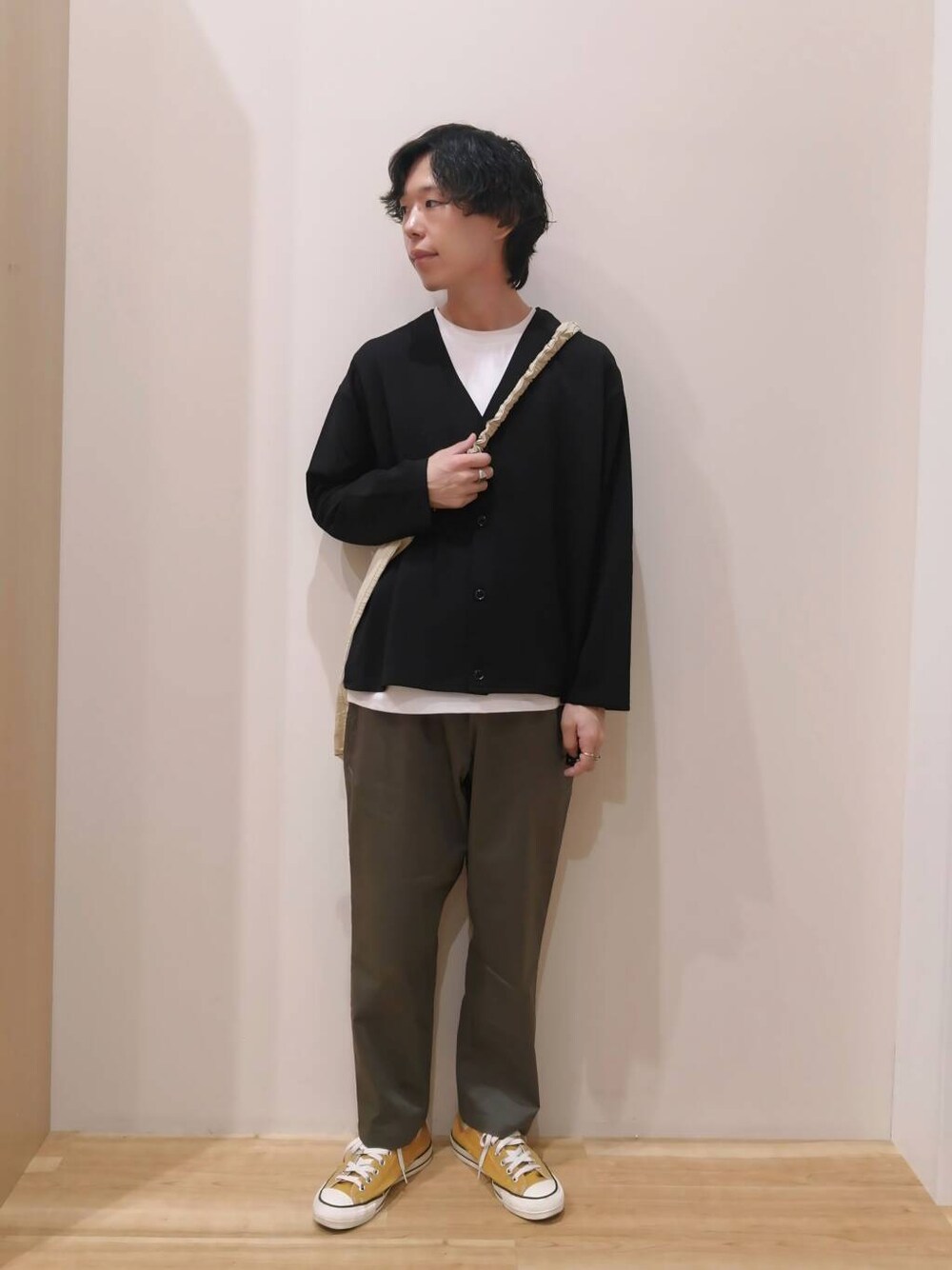 カーディガン、パンツすべてMサイズを着用しております。