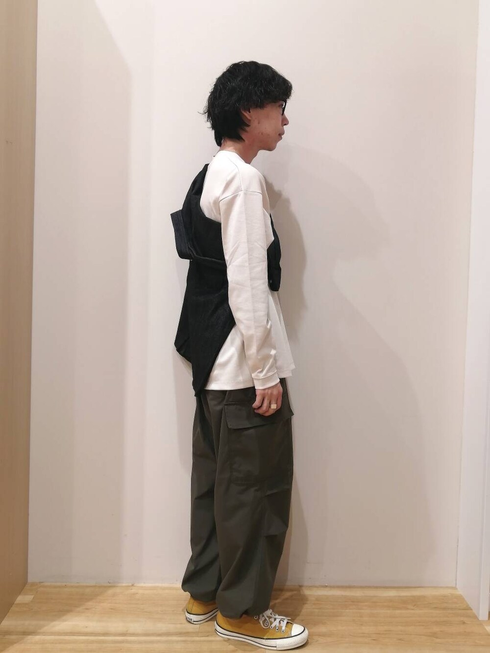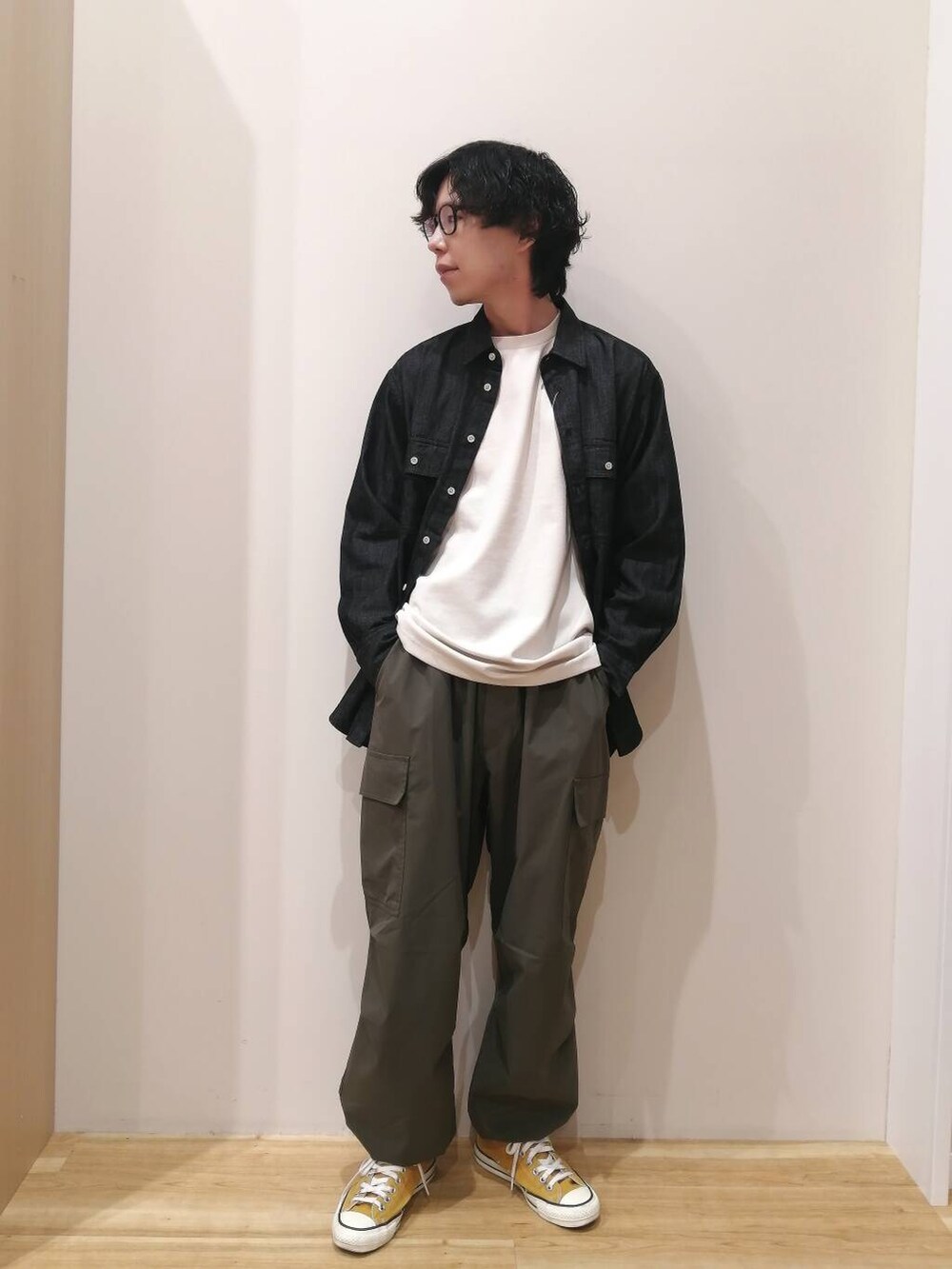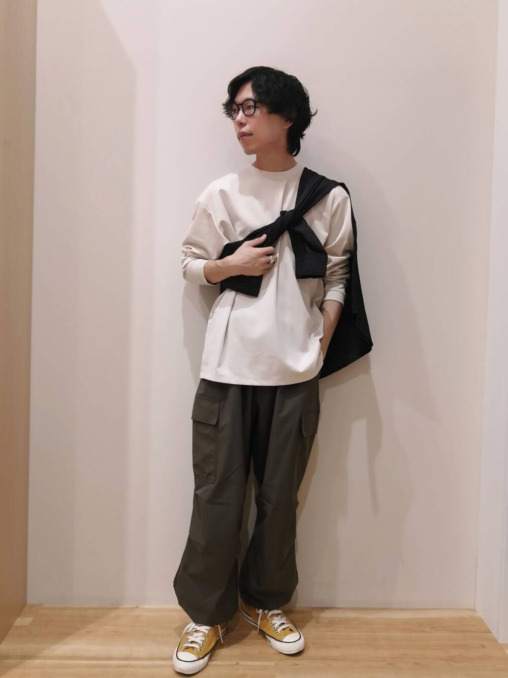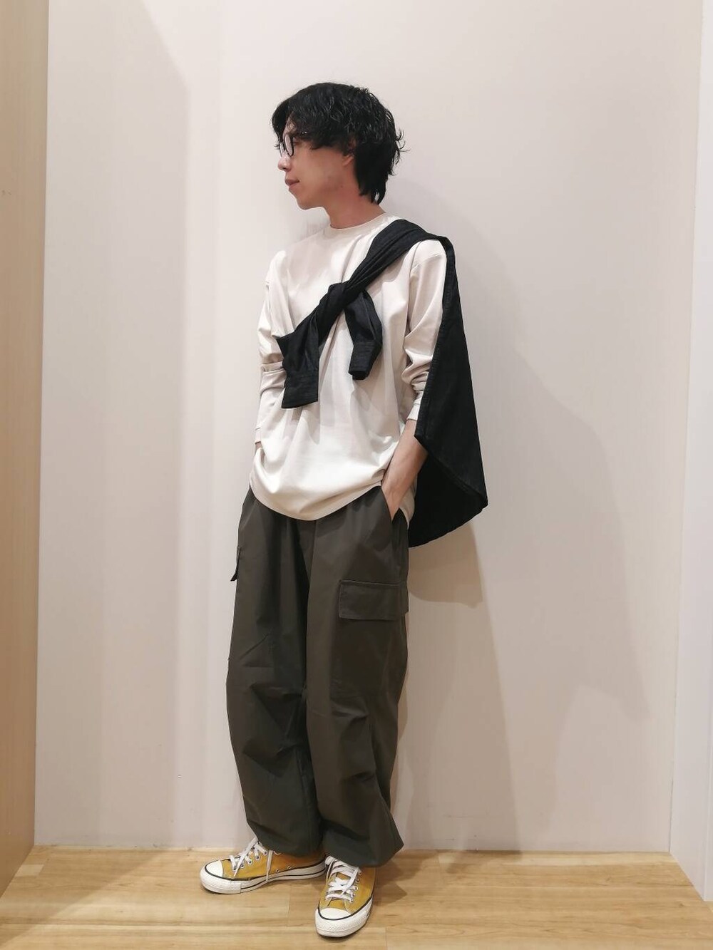 TシャツとパンツはLサイズ、シャツはMサイズを着用しております。