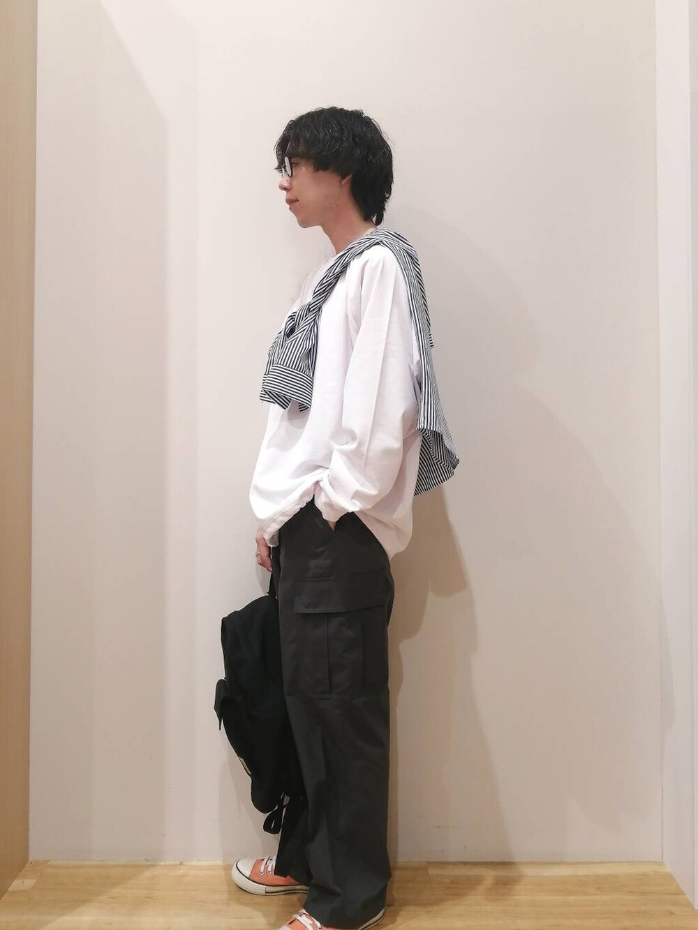 シャツ、カットソー、パンツすべてLサイズを着用しております。