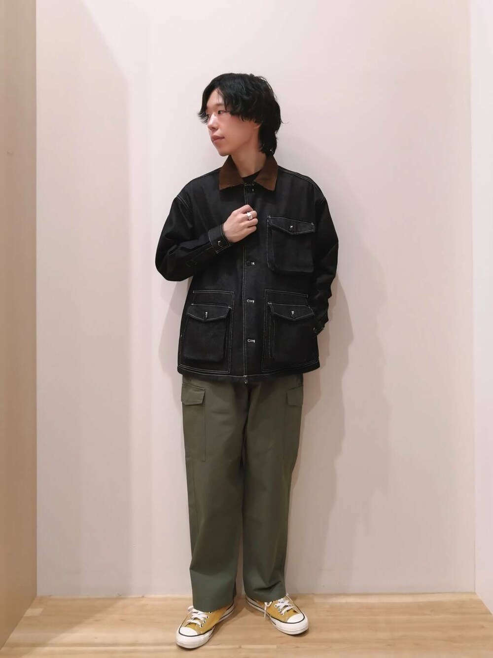 パンツはコットン素材の無骨な印象のカーゴパンツです。
