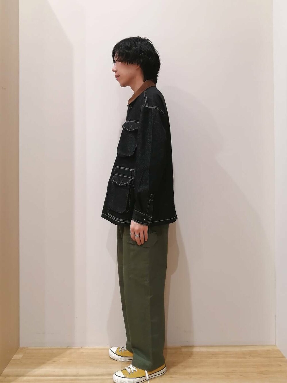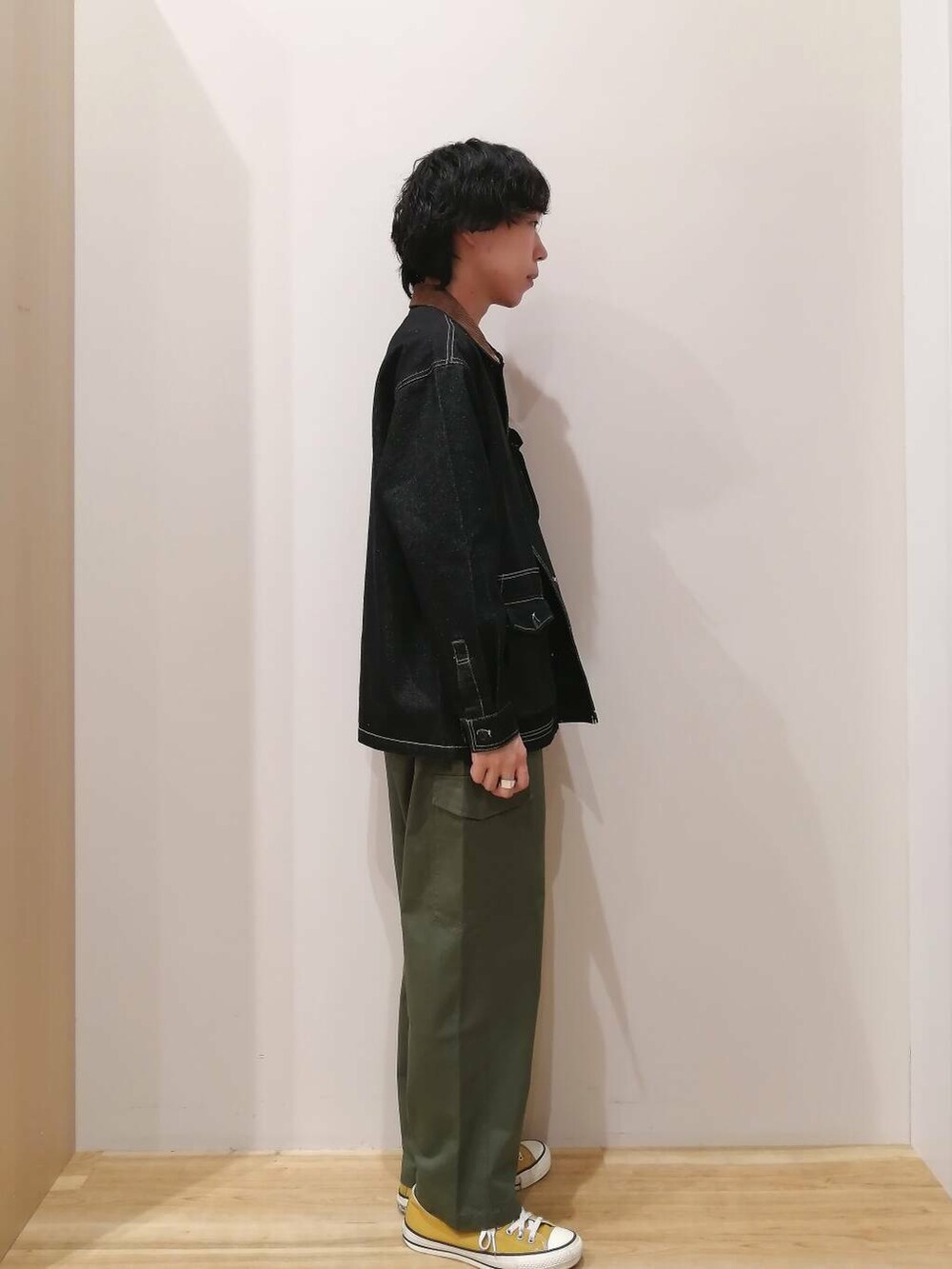 アウターはSサイズ、パンツはLサイズを着用しております。