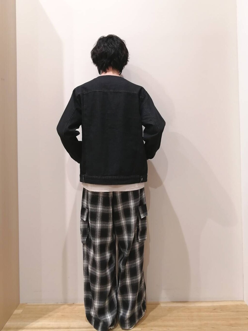ジャケットとTシャツはMサイズ、パンツはLサイズを着用しております。