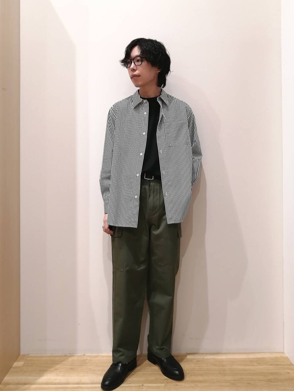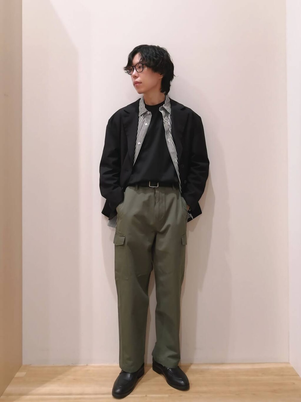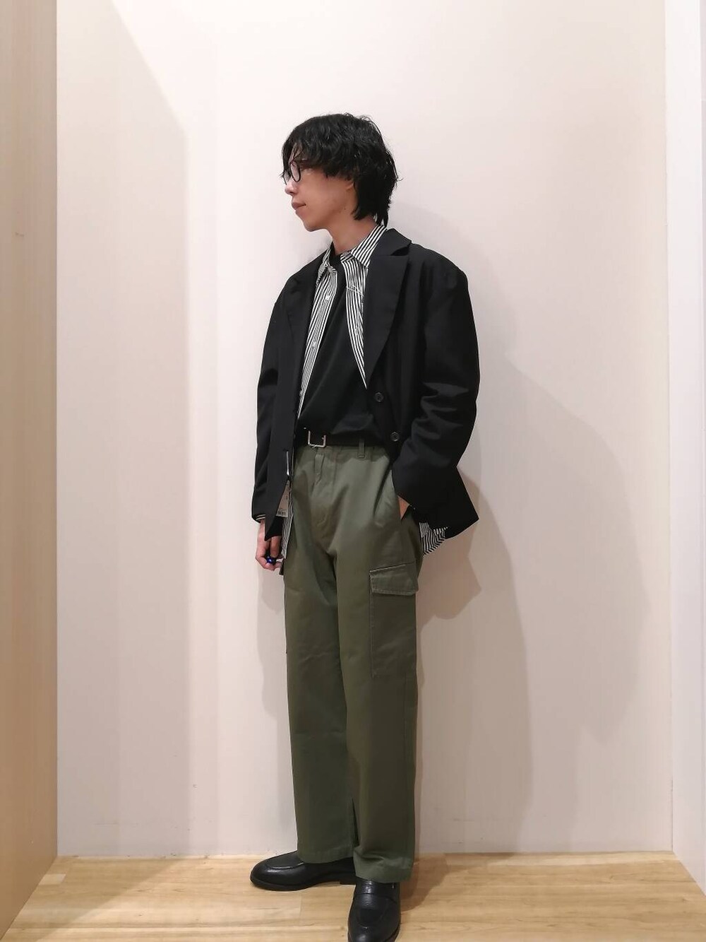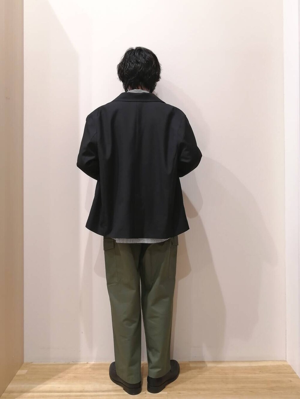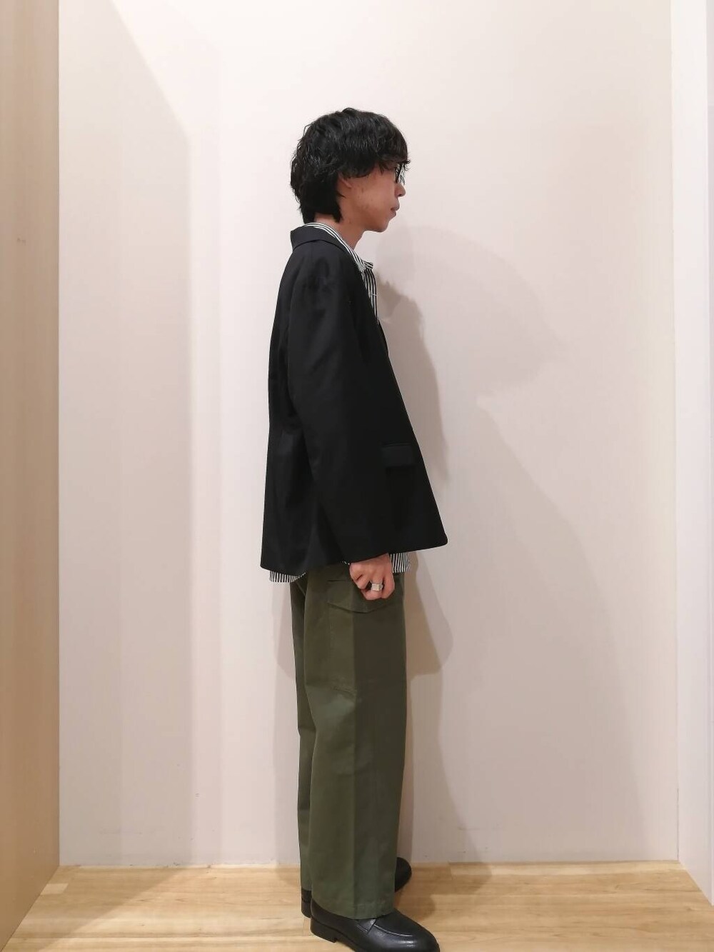 ジャケットはFREEサイズ、シャツとカットソーはMサイズ、パンツはLサイズを着用しております。