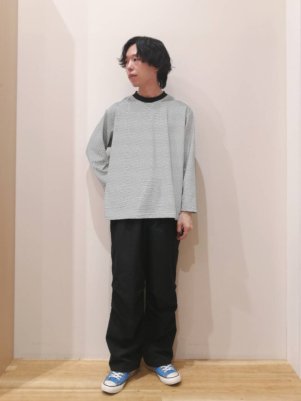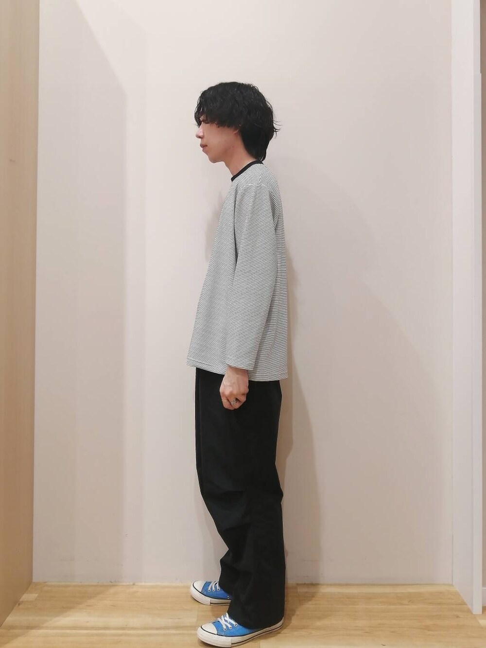 シャツとTシャツはMサイズ、パンツはLサイズを着用しております。