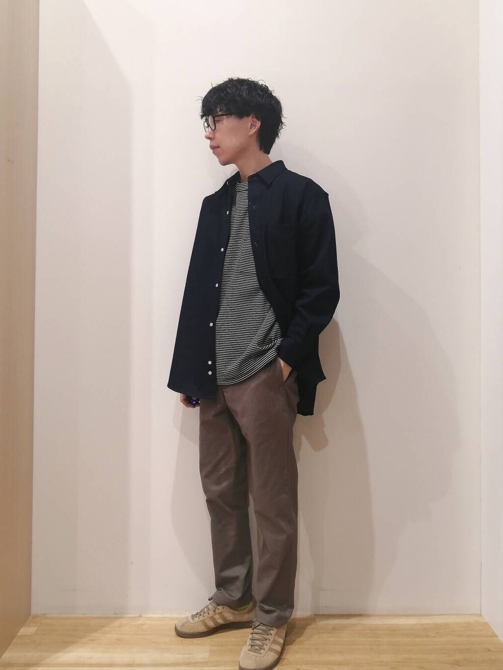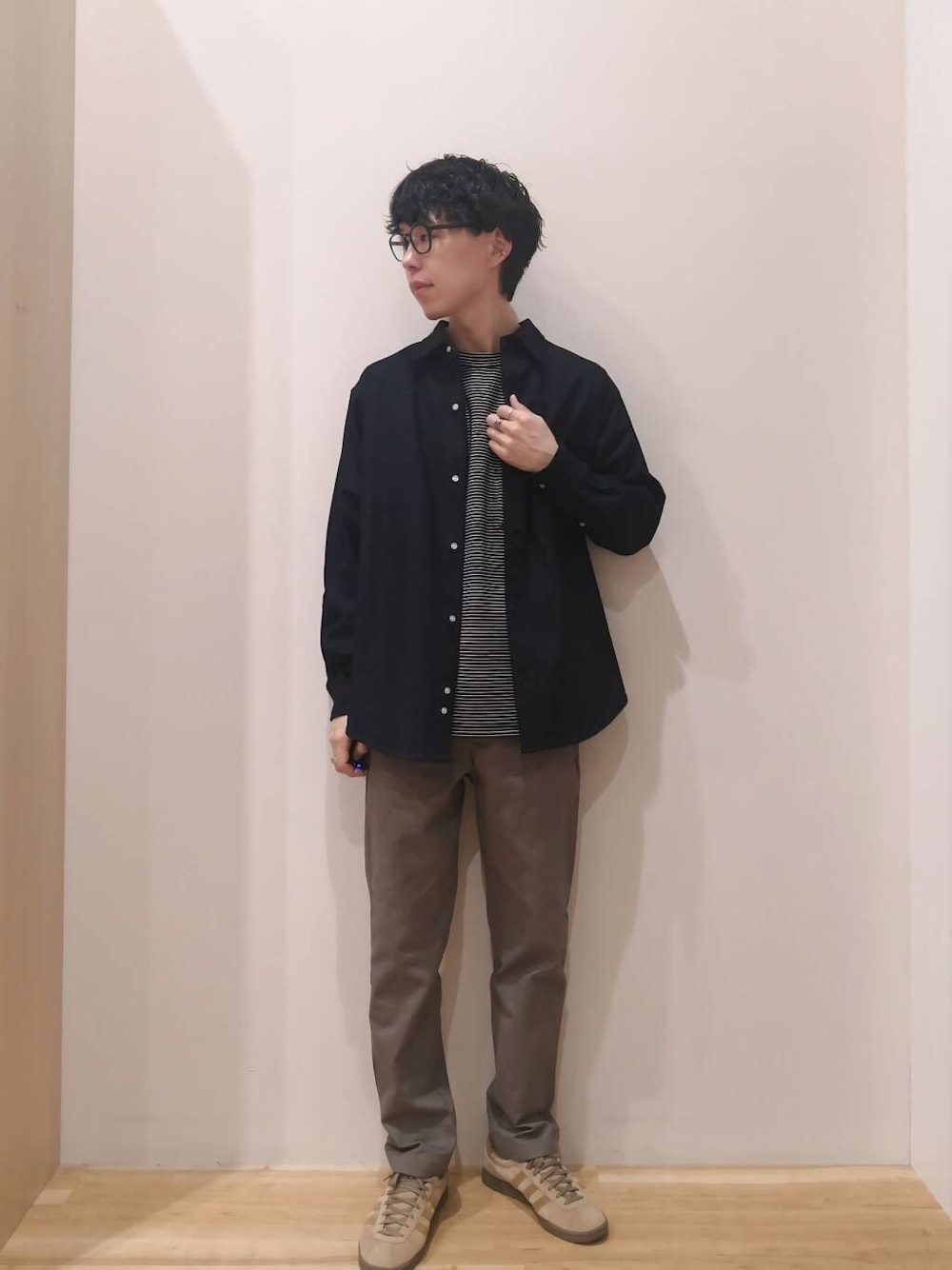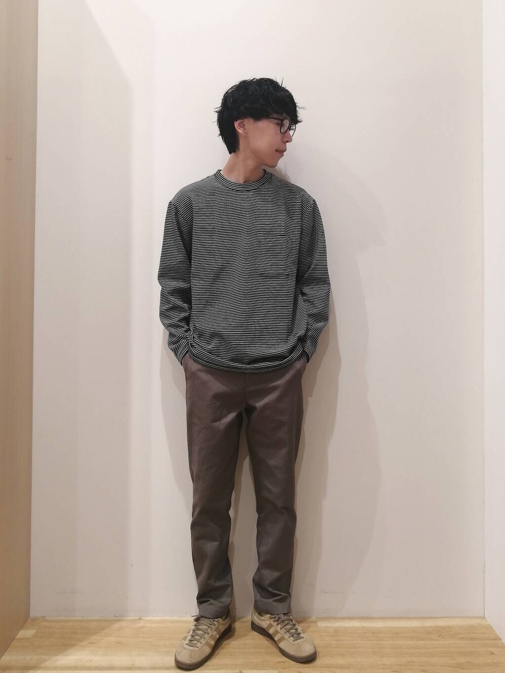 パンツはチノ素材で起毛がかった生地感のアイテムになります。