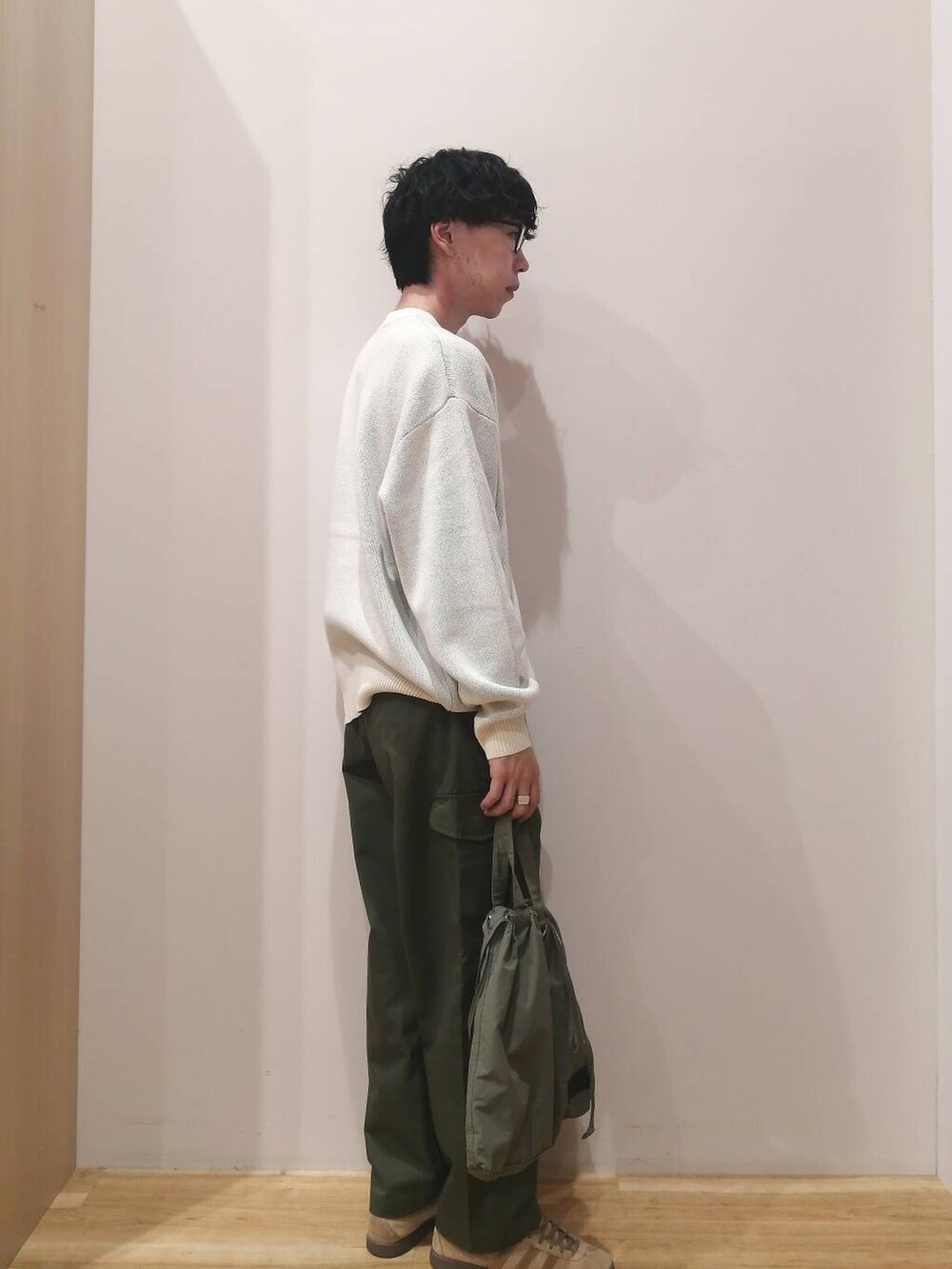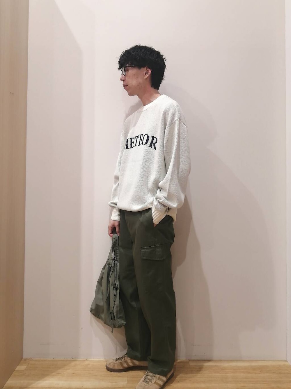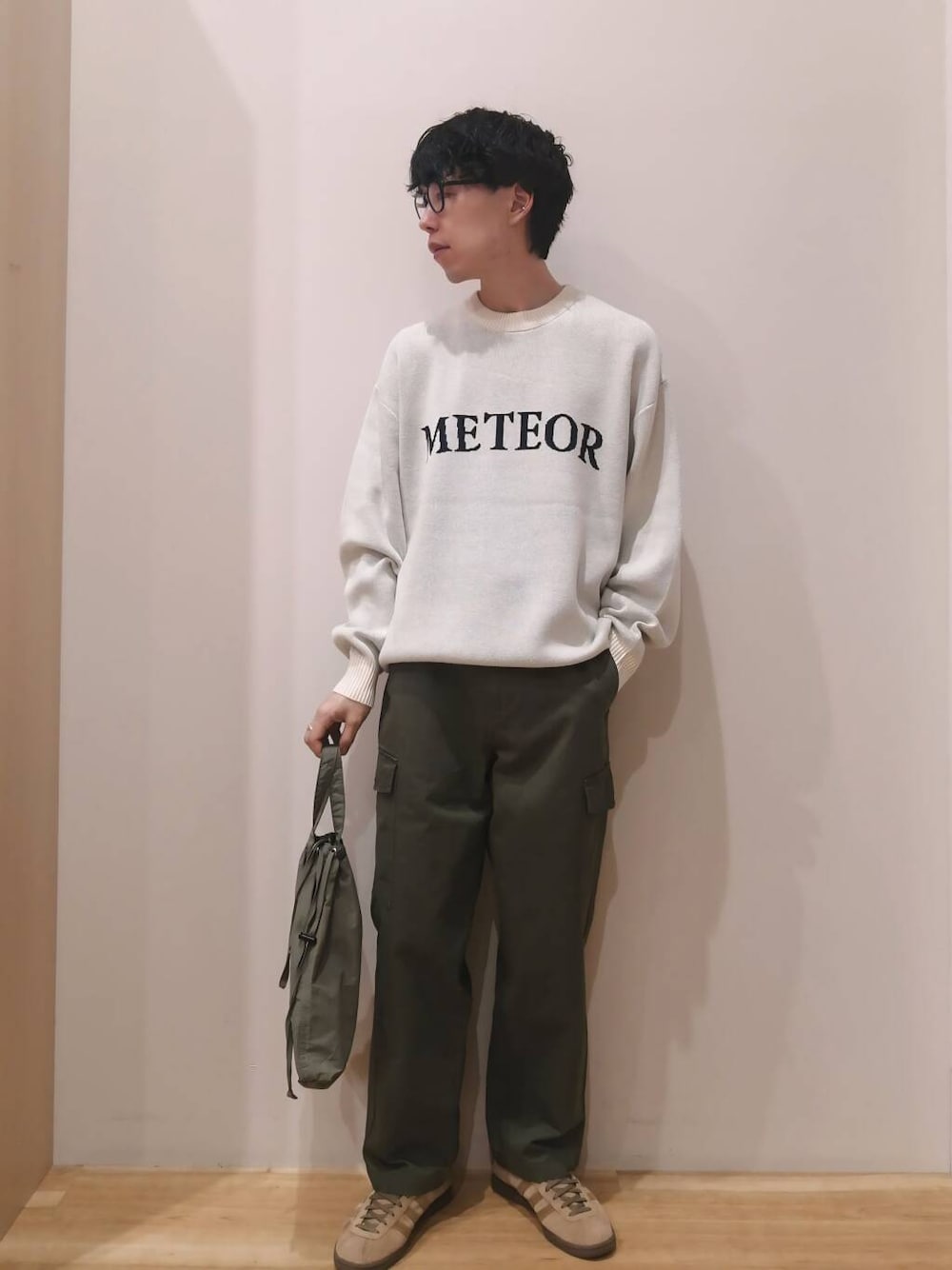 ニットはFREEサイズ、パンツはMサイズを着用しております。