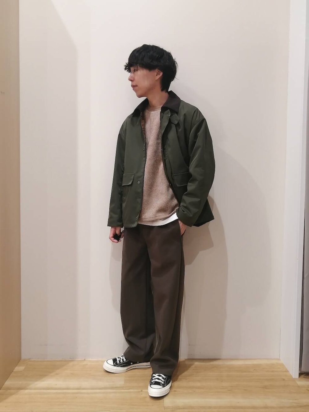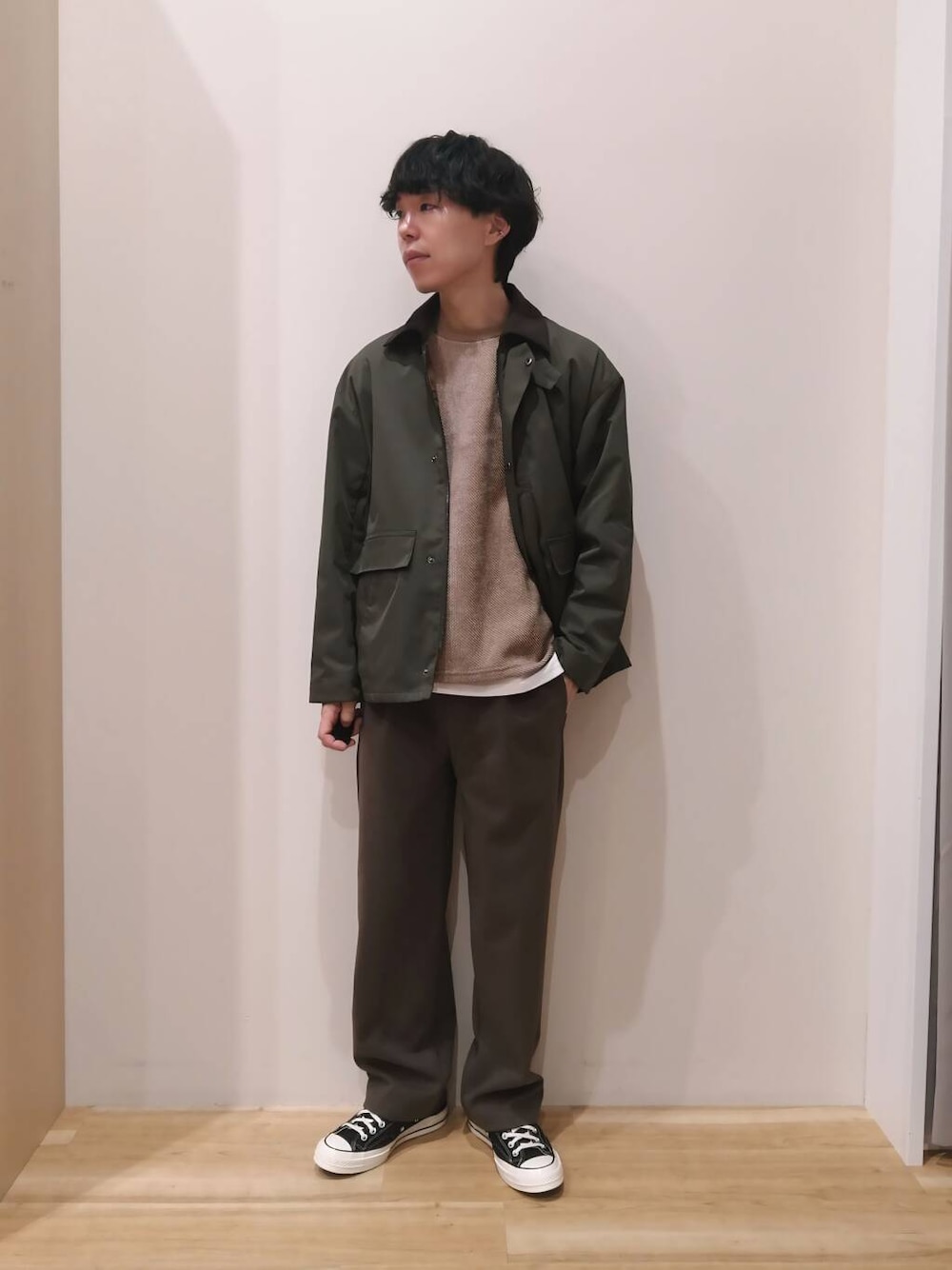 アウター、カットソー、パンツすべてMサイズを着用しております。