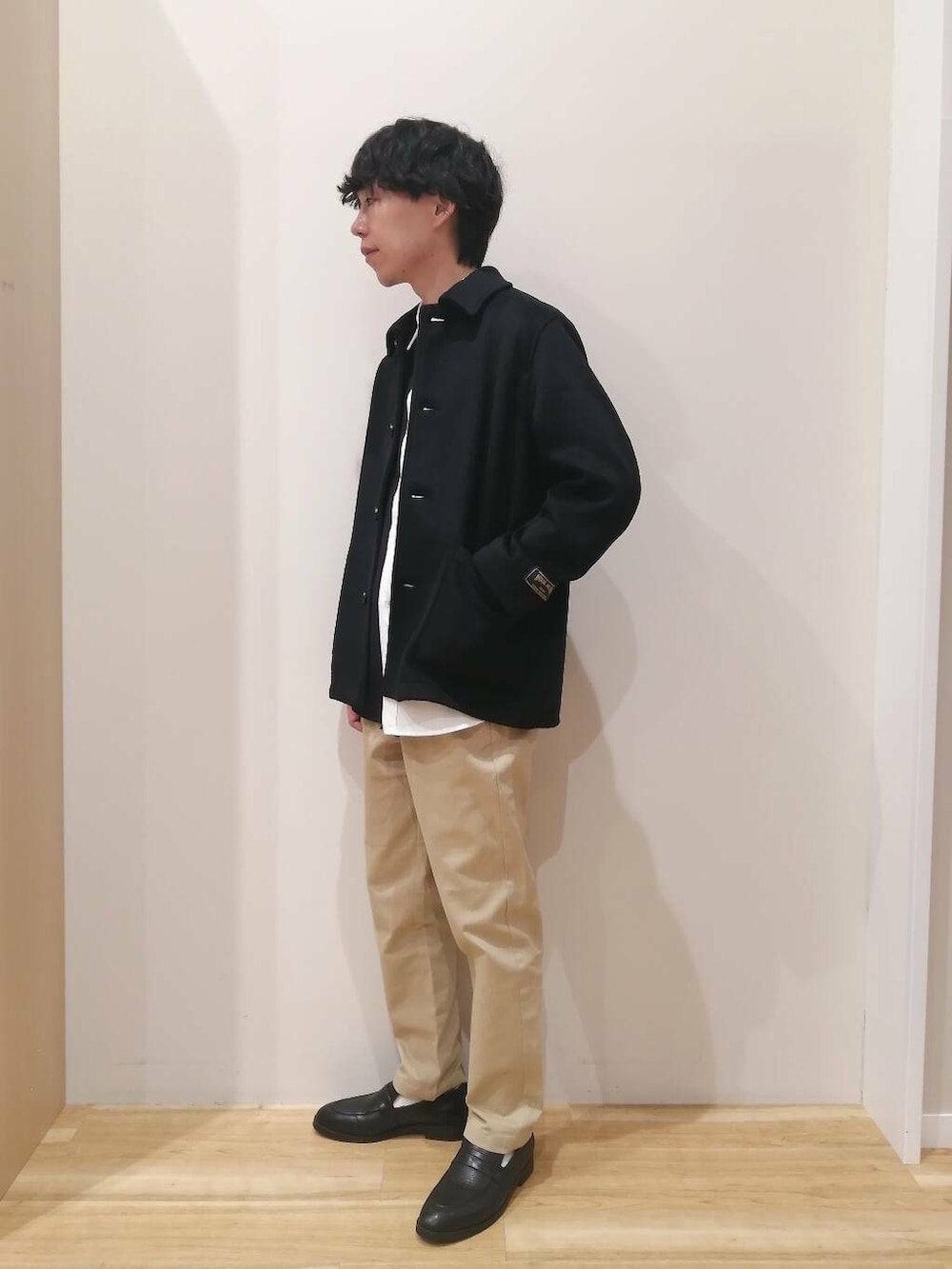 パンツは起毛がかかった生地のチノパンになります。